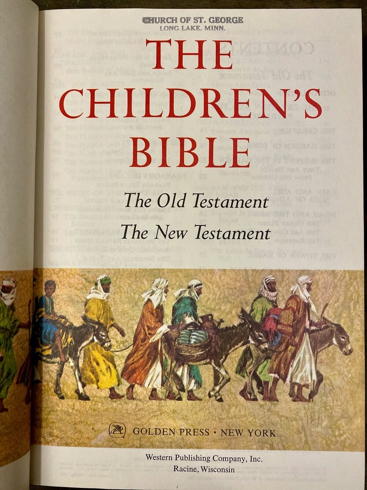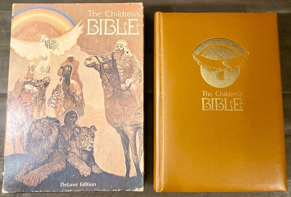 Beautiful!!! 1965 The Children's Bible / Golden Press old and new testament Deluxe Edition. Please see pictures for wear and tear, has written dedication from 1977 and stamps from a church.