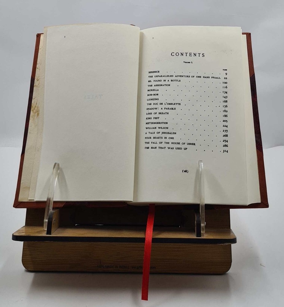 About the Book: Complete Title: The Complete Works of Edgar Allan Poe Volume 1 1908 [Leather Bound] Author: Edgar Allan Poe Edition: Reprinted by Gyan Books in 2021 with the help of original edition published long back [1908] . Language: English No. Of Pages: 406 Volume: Volume 1 Binding: HALF LEATHER binding features a leather spine and corners with the remaining cover in Raxine or Marble Paper. CHOOSE ANY LEATHER COLOR OF YOUR CHOICE WITHOUT ANY EXTRA CHARGES JUST CLICK ON IMAGES FOR OPTIONAL COLORS AND INFORM US YOUR CHOICE THROUGH MAIL WITH COLOR CODE. Customization Options Available Upon Request We provide 'Extra customization*' on request with additional charges. Please note that customization charges are applied in addition to the listed item (Book) price. Customization Extra Charges Sample Image FULL LEATHER BOUND WITH GILDED EDGES (ANY COLOR) USD 35 MULTI-COLOR LABELS (Spine) USD 12 PERSONALIZED IMAGE EMBOSSING ON THE FRONT COVER USD 40 FOLIO EDITION (12x18.5 inches) BIGGER SIZE Six times of the given price Points to note before booking order: SPECIAL DISCOUNT FOR BULK ORDERS PLEASE CONTACT US. UNIQUE LEATHER-BOUND Edition on Spine and Corners along with Golden Leaf Printing on Round Spine. This book is: Printed in Black & White (If a color edition is available you may request it by mail for a nominal charge.) Sewed binding for longer life Printed on high quality Natural Shade Acid Free Paper Professionally processed without changing its content Genuine Leather is being used for Binding Handcrafted Golden Leaf Printing. Round Spine Handmade Marble paper use for end paper Raise bands Bookmark Ribbon As these are old books each page is processed manually to make them readable. But in case some pages are blur or missing or have black spots the same are re-printed as it is to keep the authenticity of the book. In case of multi volume sets please note that the above listing is for a single volume only. (To order multiple volumes please contact us separately). We request you to understand that these leather-bound books are work of art and hence require time to go through different process to be the masterpieces that they are. We usually take 20 business days as handling time to dispatch shipment. We consider special request for a special occasion. Craftsman based in India prepared this book and shipped from different stock locations around the Globe. PRODUCT DISCLAIMER: Please be aware that because leather is a natural material slight discoloration or change in texture may be visible. ABOUT US GYAN BOOKS INTRODUCING A REMARKABLE LEATHER-BOUND EDITION, METICULOUSLY CRAFTED BY THE ESTEEMED INSTITUTION: RARE BIBLIO A UNIQUE LEATHER-BOUND BOOK FOR ELITE READERS/COLLECTORS OF OLD RARE AND BESTSELLING BOOKS. An ORIGINAL LEATHER is being used for Binding this Book on SPINE AND CORNERS along with GOLDEN LEAF PRINTING {Half Leather}. We deal into reprinting of the masterpieces crafted by authors around the world. We are proud to say that we have a collection of over 25 million books and our collection includes books that are as old as 200 years and hence are considered as RARE BOOKS. We are pioneer in this field having experience of 40 years. We also undertake printing and Leather Binding jobs of other books. Thesis printing and Leather Binding is one of our important services. Many publishers and authors approach us for their books to bind in our unique leather binding format for their special customers. Our craftsmen are active in this job since generations. Restoration of old books is our expertise. We are known by our Customization options. We have many leather color options in our bucket. The whole process is done manually so that it gives you the same feeling of old book.