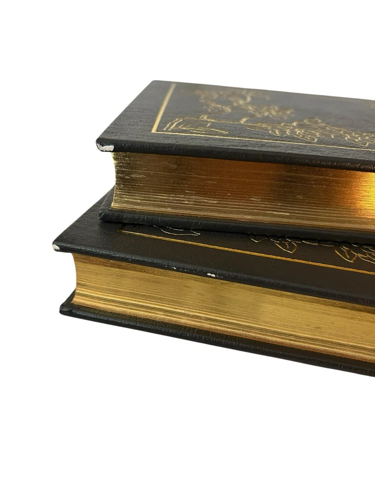 The Easton Press Gone with the Wind Margaret Mitchell 2 vols 1968 Leatherbound Good vintage condition . Normal signs of wear and use, there are two spots with tiny bit of white paint, and om the gold foil there are some spots on the top part. All the wear mentioned can be seen in the pictures. Please study pictures carefully before purchasing Feel free to ask us any questions. Thank you for visiting our store! Shlv blck