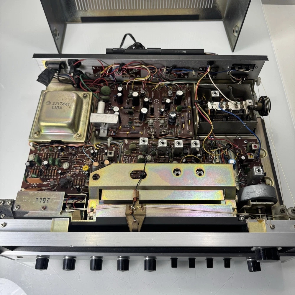 The Fisher 203 Stereo Receiver 30 WPC Turntable Ready Cleaned and Serviced Good overall condition - we have opened this unit up, Checked all the boards, banished the dust, cleaned the Pots, the Knobs, and shined up the Metal Face. No Electrical issues, we replaced a few of the lights, 1 on the signal meter, 5 along the Radio Dial, There is a set of lights for the tuning needle and the for the source selector. We did not replace those lights - they require a bit more surgery. Also the power/speaker selector is missing the writing around it, as well as the volume knob, and the source selector is starting to fade - see photos. ****updated 3/28/25***** Signal Lights replaced