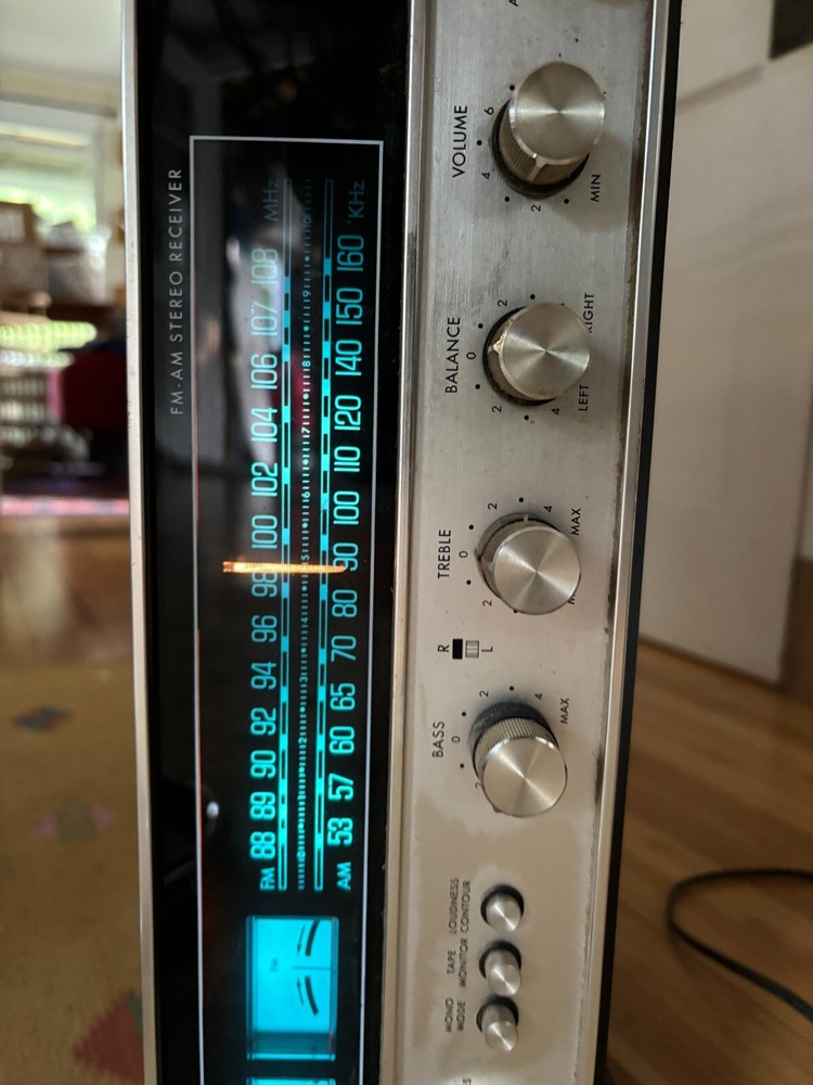 The Fisher 222 AM/FM Stereo Receiver turns on and worked will show wear and tear and the antenna has a ty wrap on it free fast shipping