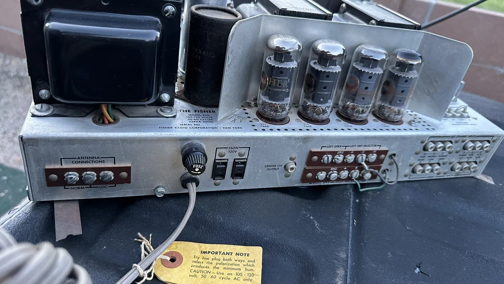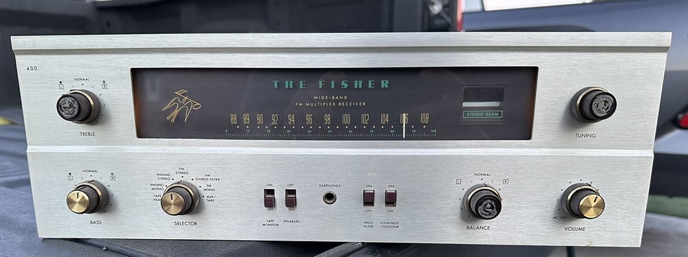 Unit turns on and works but due to age of it I am selling for parts. Front glass lights turn on but very dim. 3 knobs are missing the gold colored top (refer to pictures ). was able to pull in fm signal and get sound out of both left and right speakers. Was. Bit dusty and. New owner should thoroughly clean and inspect unit due to the age. Always packed and shipped with care. The Fisher 400 is a vintage tube FM multiplex stereo receiver that is being sold as is for parts. It was manufactured by Fisher and has a model number of Fisher 400. This product falls under the categories of consumer electronics, vintage electronics, vintage audio & video, and vintage amplifiers & tube amps.