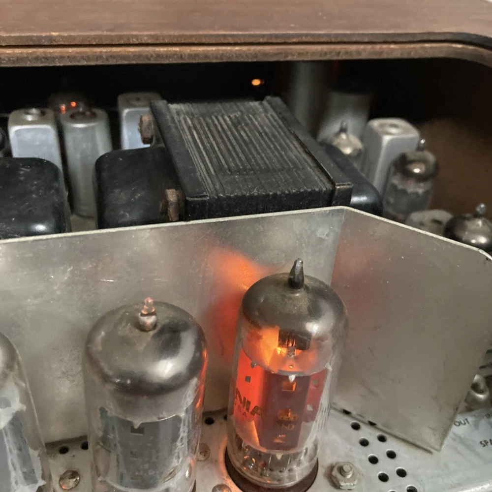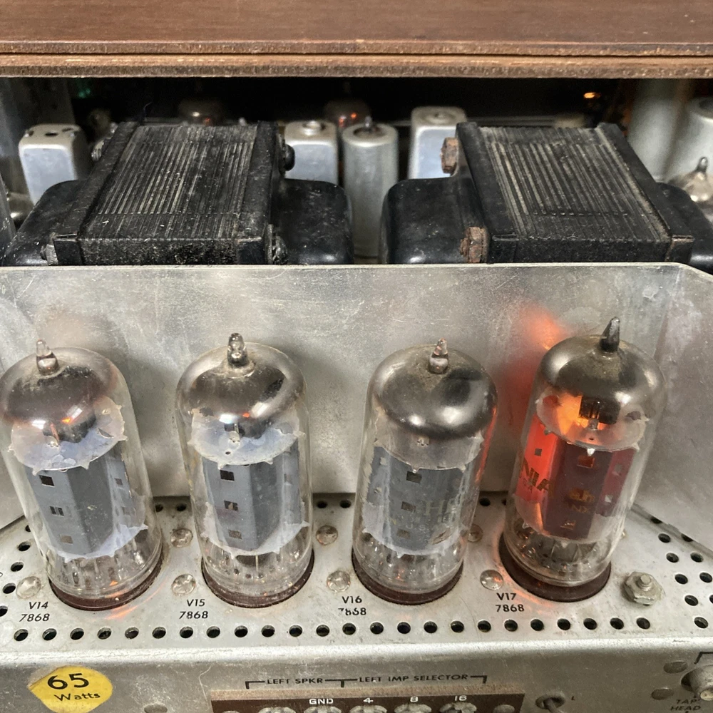 Selling this as is for parts or repair because I don’t have all the equipment to properly test everything on this. Tubes do turn on as you can see in the photos but I’m not sure what the longevity of them is and if they are working at full capacity. System does power on and all the tubes appear to be turning on but system has been sitting in a living room for several years without use. When I initially plugged it in and turned it on it didn’t power on. I tried again a couple minutes later and it turned on fine so I’m not sure if there’s an issue there or if this is common for these models. I hooked up some speakers to the system and it played but I know this system has lots of potential when set up properly and I can’t give an honest assessment of condition without the proper equipment. I will take out the back tubes to protect them in shipping. It will be shipped with lots of protection to ensure it gets to you in the same condition I mail it. This is being priced based on the parts or repair value bc the tubes and case alone are valuable. If you know a lot about these systems it could be a great value for you.