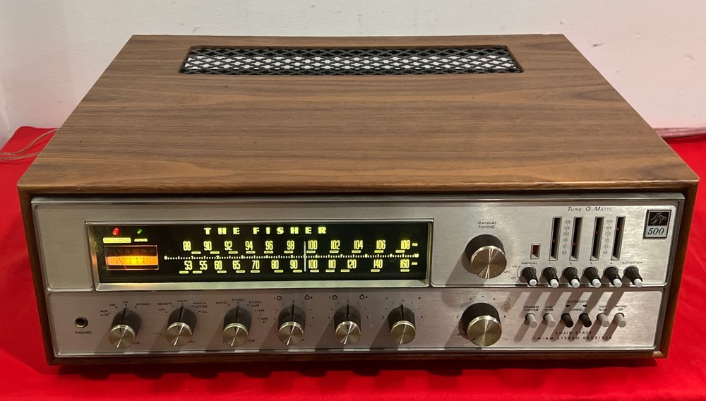 The Fisher 500-TX Stereo Receiver Auto Tune-O-Matic Solid State With Wood Case selling tested in working condition , being sold in used vintage condition with some signs of wear due to age please look at the pictures for cosmetic condition please look at the pictures , feel free to email me if you have any question that i can answer Estate find as you can see the pictures previous owner had something change on the unit , look at the pictures very close please some capacitors and power supply and new LED light not shipping to HAWAII , ALASKA , PUERTO RICO , VIRGIN ISLAND , PO BOX OR APO ADDRESS will be ship with fedex ground properly pack with insurance and signature required final sale no return no refund