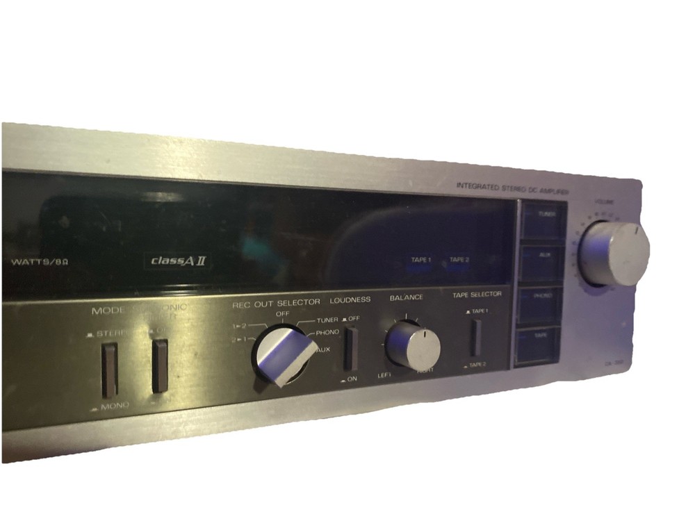 This listing is for a vintage Fisher CA-350 Integrated Stereo DC Amplifier. Unit is not working and is being sold strictly for parts or repair. The exterior is in decent condition for its age, with all knobs and buttons intact. It shows signs of wear and light surface dust, consistent with age. I have not tested the unit extensively — it powers on (if it does), but no further testing has been done. Please assume it is non-functional. This model features: • Dual tape deck inputs • Classic analog power level meters • Bass, treble, and balance controls • Vintage silver faceplate styling • Solid construction – great for restoration or salvage Perfect for collectors, audio techs, or anyone looking for original parts.