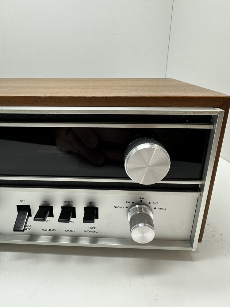 This thing has got no business sounding this good!! The Fisher 202 Futura was the last great Fisher, produced by Hitachi in Japan under close oversight by Avery Fisher. This stunning example is very very clean and wearing its original, optional and rare wood cabinet. All controls cleaned and lubricated Bias and DC offset adjusted Replace lamps with new Incandescent lamps Works and sounds fantastic Will be packaged properly for shipping.