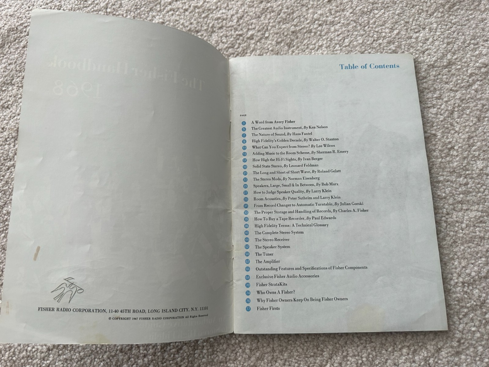 72 Page full product guide from Fisher for 1968. Excellent information about both general high fidelity systems, as well as the offerings from Fisher for that year. Avery Fisher and the Fisher company advanced the collective knowledge among consumers about high fidelity while advancing their own technology to meet the increasing demands for better music generating audio systems in the 60's and 70's. This catalog and glossary of terms is an great example of that contribution. Great coffee table exhibit and reading for the Fisher and Audio Collector to have. The pictures are part of the description. Be aware vintage print materials, paper and ink may have odor. SHIPPING: I typically ship same or next day. Packing and shipping is expensive, and I am not Amazon Prime, so shipping is not free. BEFORE YOU BUY, READ CAREFULLY: Selling AS IS. No Warranty is expressed or implied. NO Returns or refunds for any reason. No after-sale support is implied or offered.