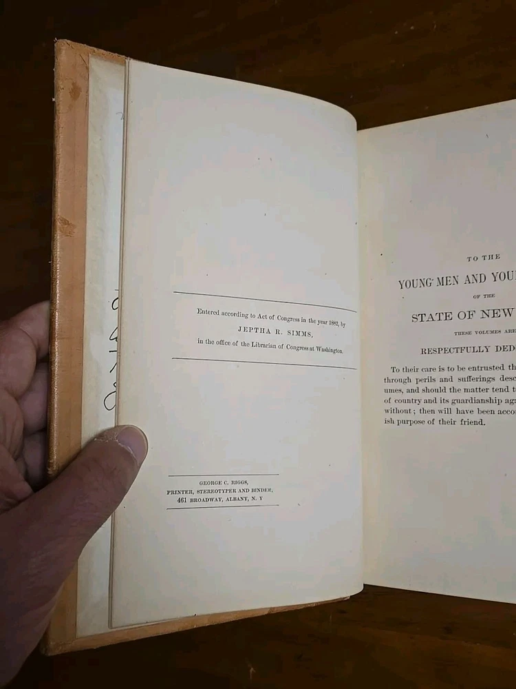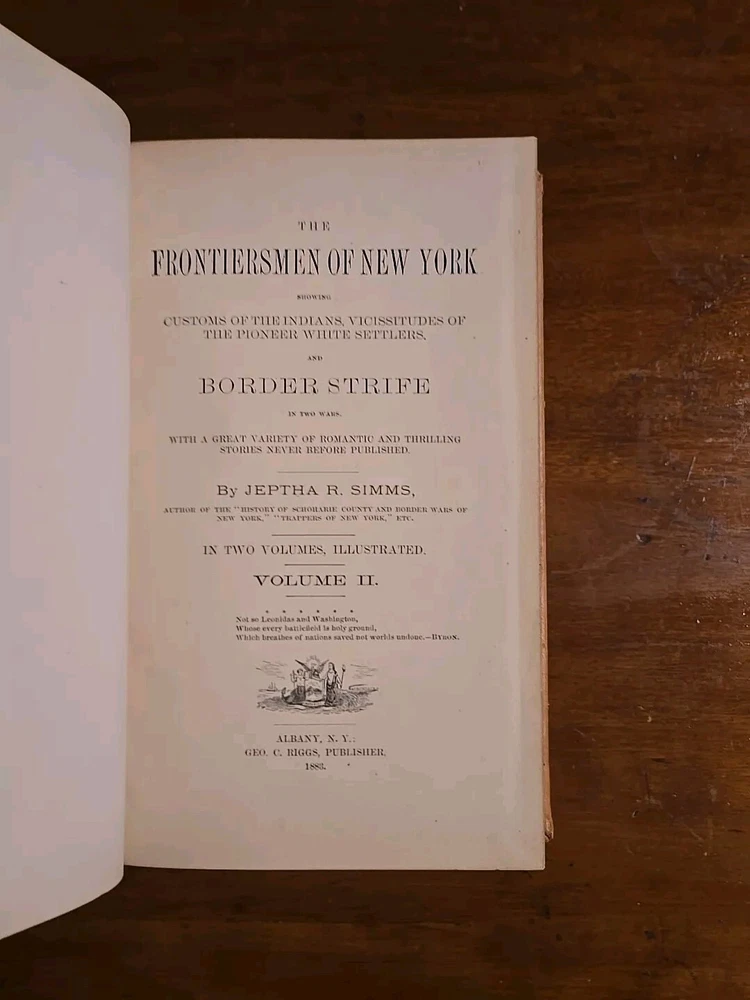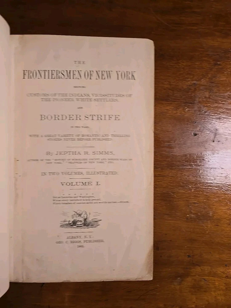 The Frontiersmen of New York, Showing the Customs of the Indians, Vicissitudes of The Pioneer White Settlers. And Border Strife In Two Wars. With a great variety of Romantic and Thrilling Stories Never Before Published. by Jeptha R. Simms. Geo. C. Riggs Publisher, Albany, NY 1882, Two Vol. Set. (C1) I run a small used book store in Upstate New York. Youtube: "The Book Peddler" see book reviews and check out my latest book picks and stay up to date with what goes on in the shop! Weekly Videos Posted! Please like and Subscribe to help support, it's much appreciated! Here's a Link to the latest Book Pick: https://youtu.be/eSF3yELxjX0 Terms: Please remit payment no later than 3 days after the purchase via PayPal. Shipping: Domestic orders shipped via media mail, unless otherwise noted.
