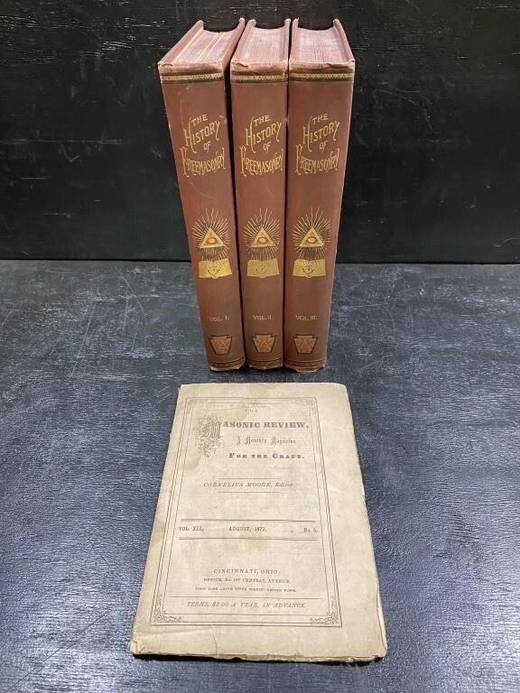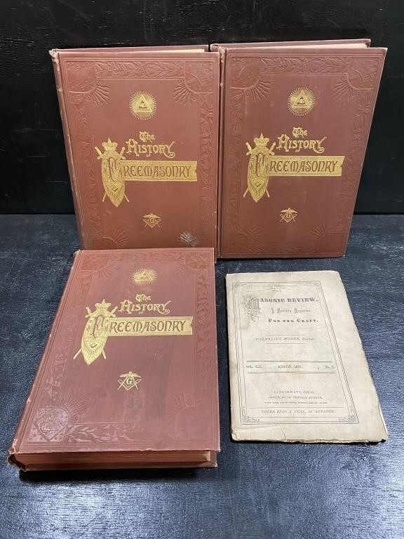The 3 volume set titled "The History of Freemasonry" volumes I, II, III, is a prized addition for collectors. Written in English by Albert Mackey, a prominent author in the historical genre, the leather-bound books focus on the subject of Freemasonry. This is a rare publication by Yorston Publishing 1898. It apparently was published as a collector's edition. The book set comes with special attributes, including a Collector's Edition label, making it a unique and valuable find for any collector of antiquarian and collectible books. Additionally, there is a pamphlet titled Masonic Review. PICTURES ARE PART OF THE DESCRIPTION PLEASE ASK ALL QUESTIONS BEFORE BUYING {♤} QUOTED SHIPPING IS FOR THE CONTIGUOUS 48 STATES ONLY WE PACK WITH UTMOST CARE CHECK OUR 100% FEEDBACK CUSTOMER SATISFACTION IS OUR #1 PRIORITY SEE OUR OTHER QUALITY ITEMS