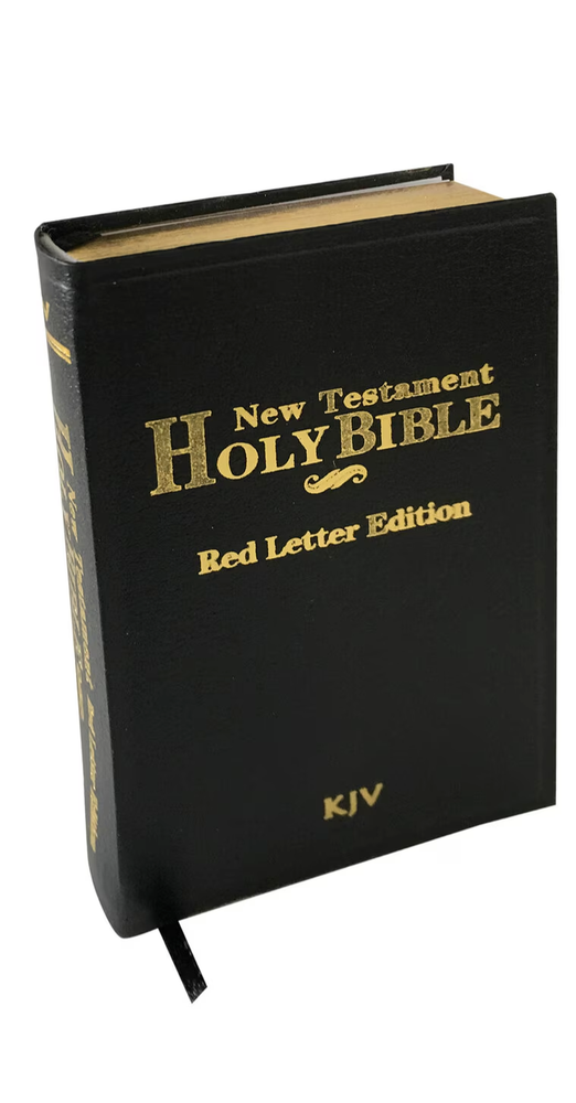 YOU GET 1 BRAND NEW RED LETTER BLACK KING JAMES VERSION OF THE NEW TESTAMENT POCKET BIBLE BUY 2 AND GET 1 FREE BIBLES.. JUST ORDER 2. MUST BE ORDERED AT THE SAME TIME. HARD COVER LEATHER DESIGN WITH GOLD LEAF PAGES AND BOOK MARK RIBBON GREAT GIFT OR TO HAND OUT TO PEOPLE Ships Media mail or Usps ground advantage depending on cost. Media mail speed has improved greatly Size is 4.5" x 3" x .5"