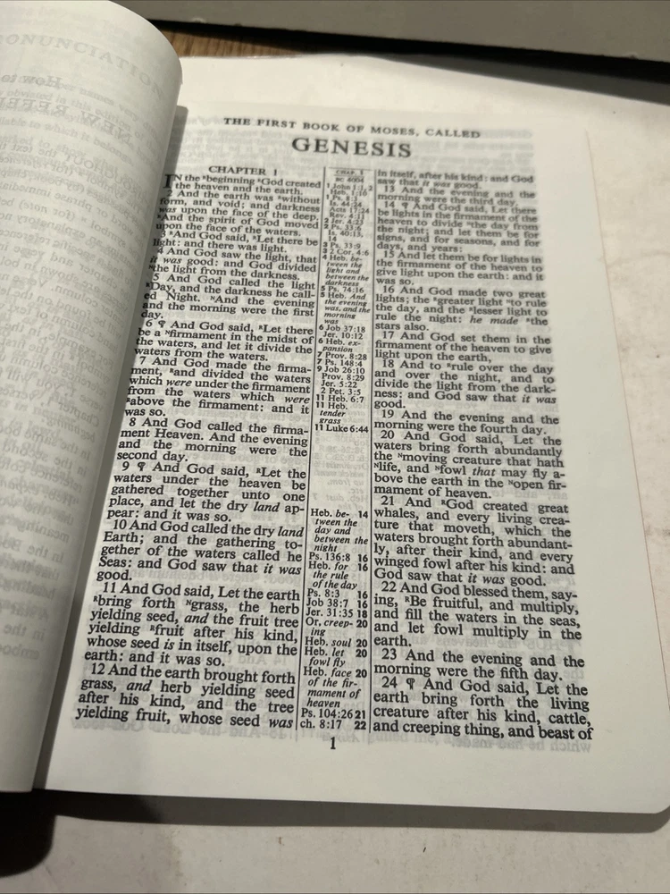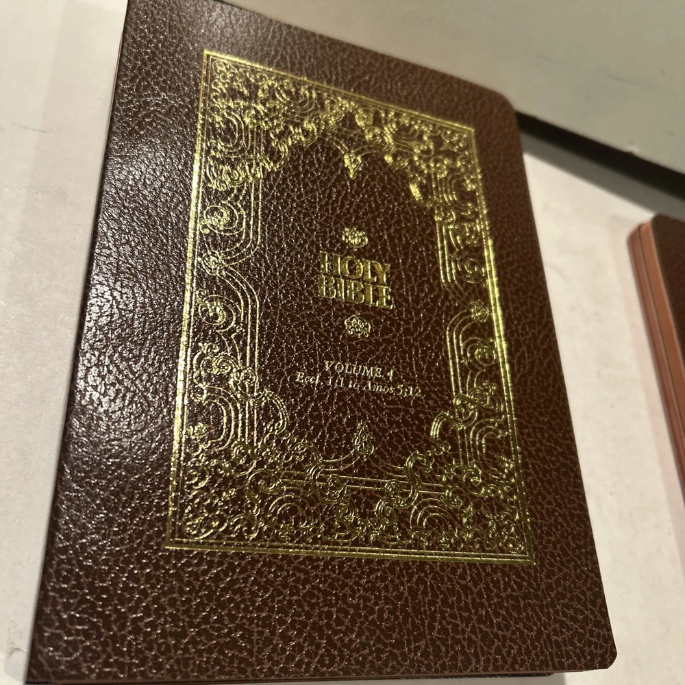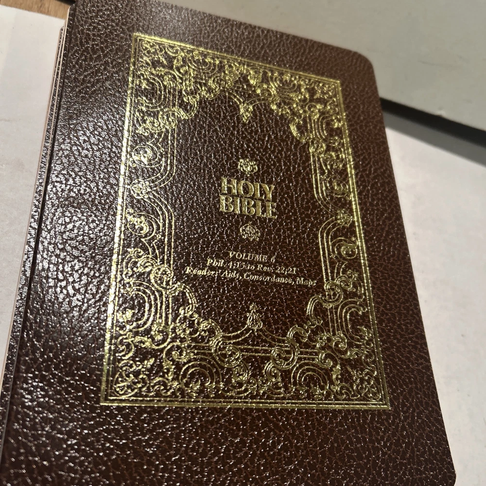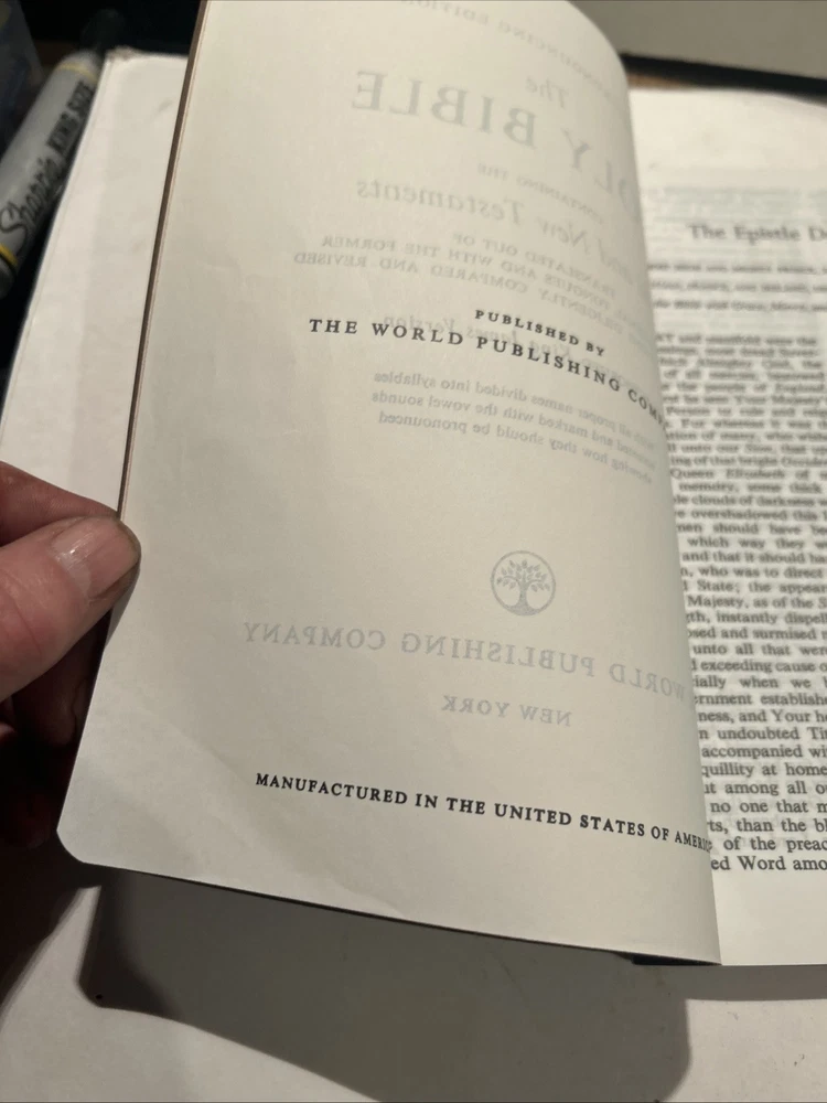 For your careful consideration: The Holy Bible King James Version Self Pronouncing Edition published in six individual volumes with matching slipcase. It features are bold large print font and the words of Christ are in bright red. COVER MEASUREMENTS: Each Volume is 9" H x 6.5" W x .3" T Dive into the timeless wisdom of "The Holy Bible King James Version Self Pronouncing Edition Volumes 1-6," thoughtfully presented in a luxurious leather-bound collector's set. This elegant slipcase edition, published by The World Publishing Company, offers a classic reading experience for both young adults and adults interested in religious and spiritual genres. Each volume is crafted in English, allowing readers to explore the rich tapestry of Christianity through a narrative that has stood the test of time. The Bible's teachings are beautifully illustrated, enhancing the understanding and appreciation of its profound messages. This set is a treasure for any reader seeking inspiration and enlightenment. ITEM CONDITION NOTES: The set is in like new condition with clean and unmarked texts. PLEASE SEE ALL PHOTOS BEFORE BUYING.