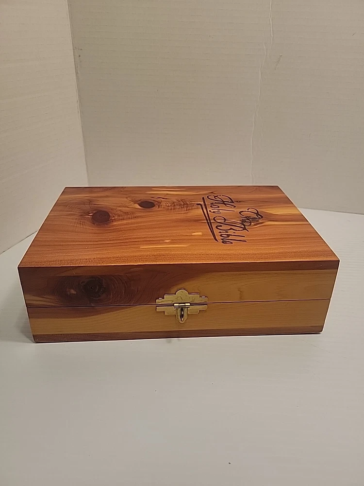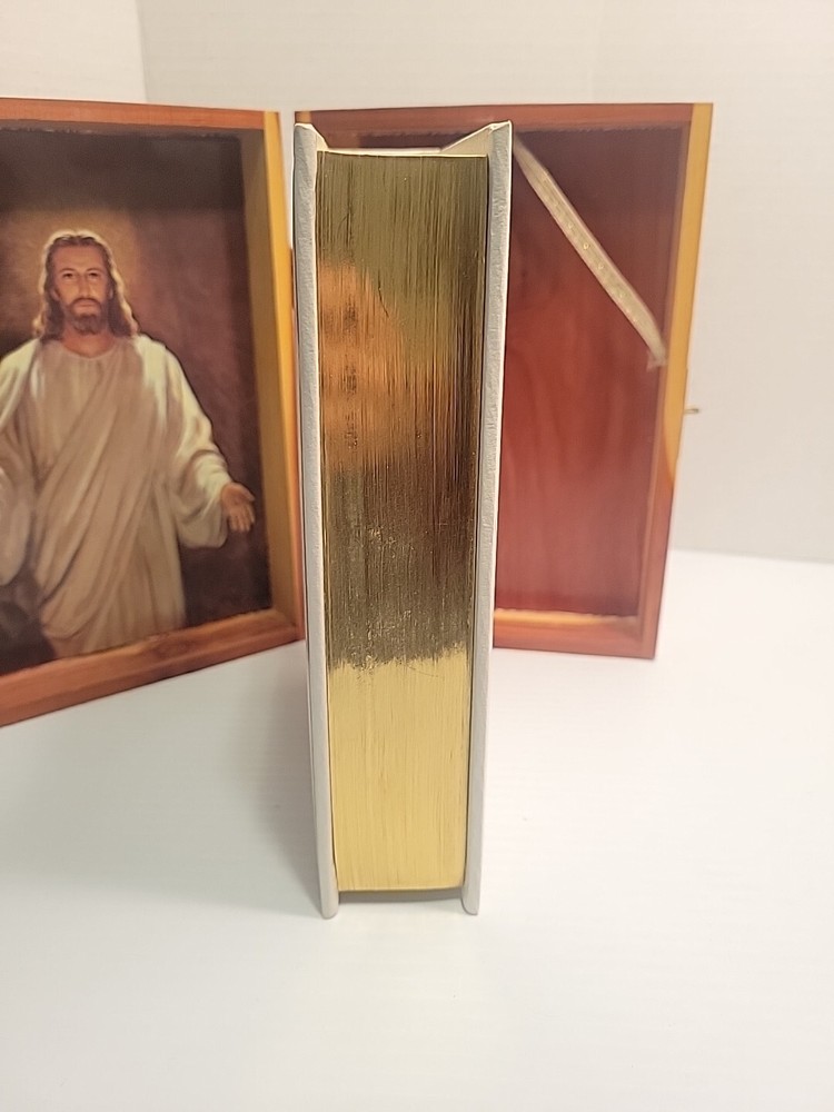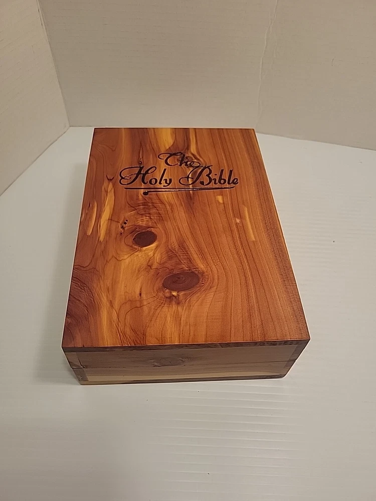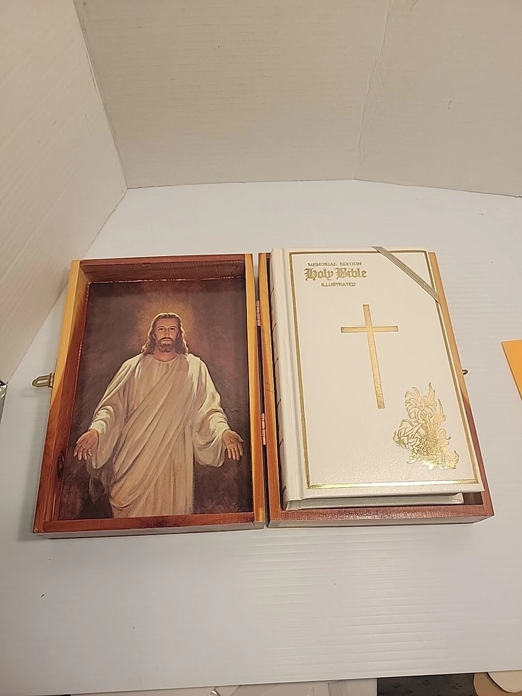 This collector's edition of The Holy Bible Memorial edition concordance with wood box is a vintage piece that is perfect for young adults and adults alike. This activity book is a part of the Bible book series and published by Tyndale House Publishers in 1976. The book is in English and contains features like a leather-bound cover, collection/box set, and illustrated pages. The book is a non-fiction narrative type that falls under the religious and spiritual genre. It is a part of the Collector's Edition edition and is not personalized or inscribed. The book is not signed, but it does come with a wooden box that adds to its aesthetic value. This Holy Bible Memorial edition concordance is a must-have for anyone who is looking for a vintage and collectible item that has spiritual significance. Good overall condition.