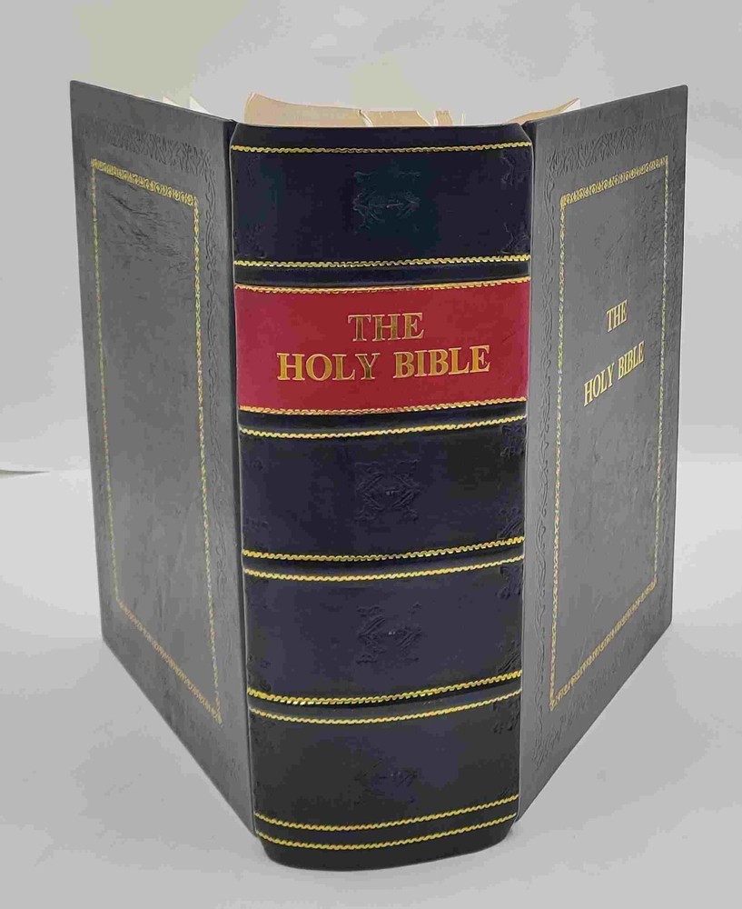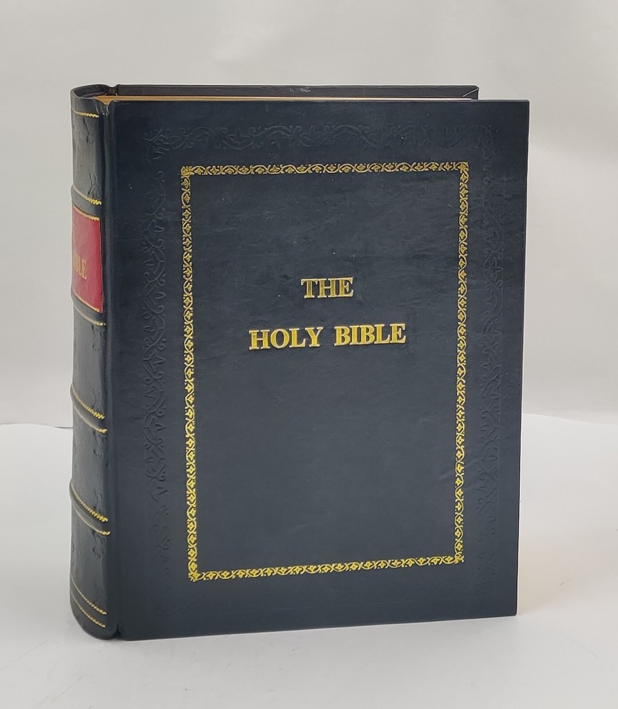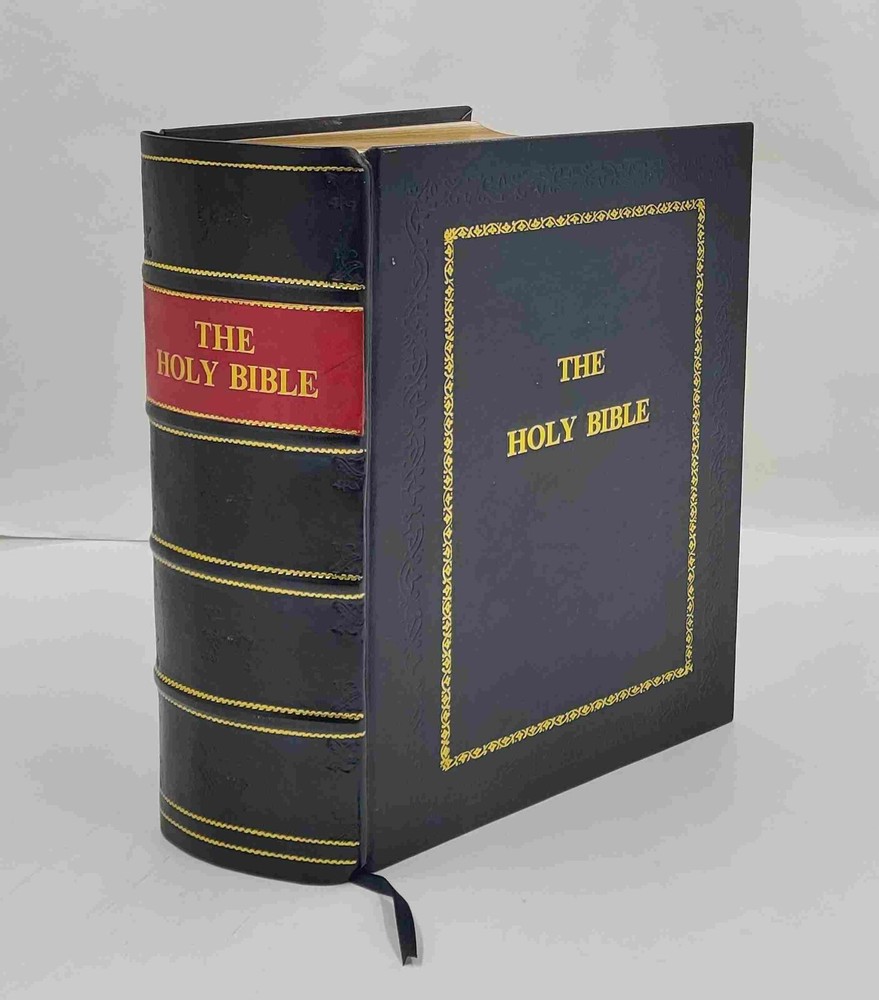 GYAN BOOKS INTRODUCING A REMARKABLE LEATHER-BOUND EDITION, METICULOUSLY CRAFTED BY THE ESTEEMED INSTITUTION " RARE BIBLIO " . This title holds the distinction of being a Bestseller, highly praised by readers across the GLOBE. A UNIQUE LEATHER-BOUND BOOK FOR ELITE READERS/COLLECTORS OF OLD RARE AND BESTSELLING BOOKS. For the Binding, we use GENUINE LEATHER , graced with opulent GOLDEN LEAF DETAILING on the SPINE , FRONT COVER , AND BACK COVER , ADDED BY EDGE GILDING . ABOUT US ? We deal into reprinting of the master pieces crafted by authors around the world. ? We are proud to say that we have a collection of over 25 million books and our collection includes books that are as old as 200 years and hence are considered as RARE BOOKS. ? We are pioneer in this field having experience of 40 years. ? We also undertake printing and Leather Binding jobs of other books. ? Thesis printing and Leather Binding is one of our important Service ? Many publishers and author approach us for their books to bind in our Unique leather binding format for their special customers. ? Our craftsmen are active in this job since generations. ? Restoration of old books is our expertise ? We are known by our Customization options. ? We have many leather color options in our bucket. ? The whole process is done manually so that it gives you the same feeling of old book. Points to note before booking order: ? SPACIAL DISCOUNT FOR BULK ORDERS, PLEASE CONTACT US. ? CHOOSE ANY LEATHER COLOR OF YOUR CHOICE WITHOUT ANY EXTRA CHARGES, JUST CLICK ON IMAGES FOR OPTIONAL COLORS AND INFORM US YOUR CHOICE THROUGH MAIL WITH COLOR CODE. ? AN ORIGINAL LEATHER IS BEING USED FOR BINDING THIS BOOK WITH GOLDEN LEAF PRINTING AND DESIGNING ON SPINE, FRONT AND BACK OF THE BOOK WITH EDGE GILDING . ? This book is: ? Printed in Black & White, (If a color edition is available, you may request it by mail for a nominal charge.), o Sewed binding for longer life, o Printed on high quality Natural Shade Acid Free Paper o Professionally processed without changing its content, o Genuine Leather is being used for Binding o Handcrafted Golden Leaf Printing. o Round Spine o Handmade Marble paper use for end paper o Raise bands o Bookmark Ribbon ? As these are old books, each page is processed manually to make them readable. But in case some pages are blur or missing or have black spots, the same are re-printed as it is to keep the authenticity of the book. ? In case of multi volume sets, please note that the above listing is for a single volume only. (To order multiple volumes, please contact us separately). ? We request you to understand that these leather-bound books are work of art and hence require time to go through different process to be the master pieces that they are. ? We usually take 20 business days as handling time to dispatch shipment. We consider special request for a special occasion. ? Craftsman based in India, prepared this book and shipped from different stock locations around the Globe. About the Book- ? Complete Title: The Holy Bible [PREMIUM LEATHER BOUND] ? Author: ? Reprinted in 2013 with the help of original edition published long back []. ? Language: English ? No. Of Pages: 1508 ? Size: 8.5x 11 inches ? Product Disclaimer: Please be aware that because leather is a natural material, slight discoloration or change in texture may be visible. ? We provide ?Extra customization*? on request with additional charges. Please note that customization charges with charged on top on the Item (Book) price mentioned on the listing. Customization Extra Charges Any type of customization Nominal Extra charges FOLIO EDITION (12x18.5inches) Four times of the given price