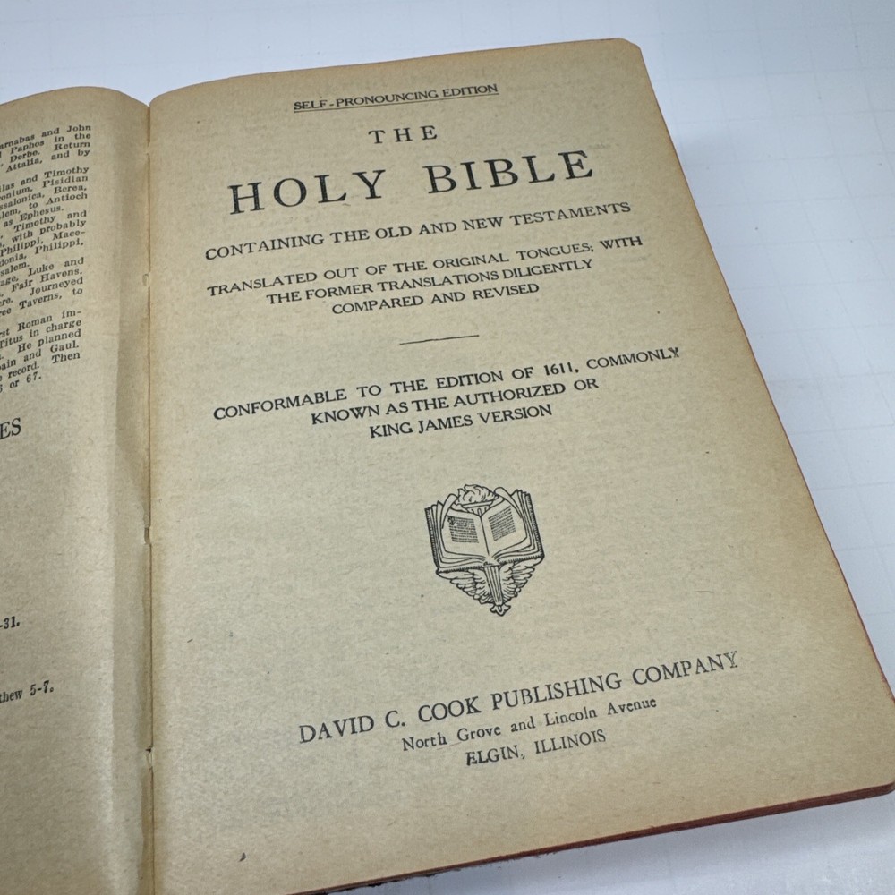 The Holy Bible Self Pronouncing Edition David C. Cook Publishing Co. Elgin Ill.. Condition is Acceptable. Shipped with USPS Media Mail.