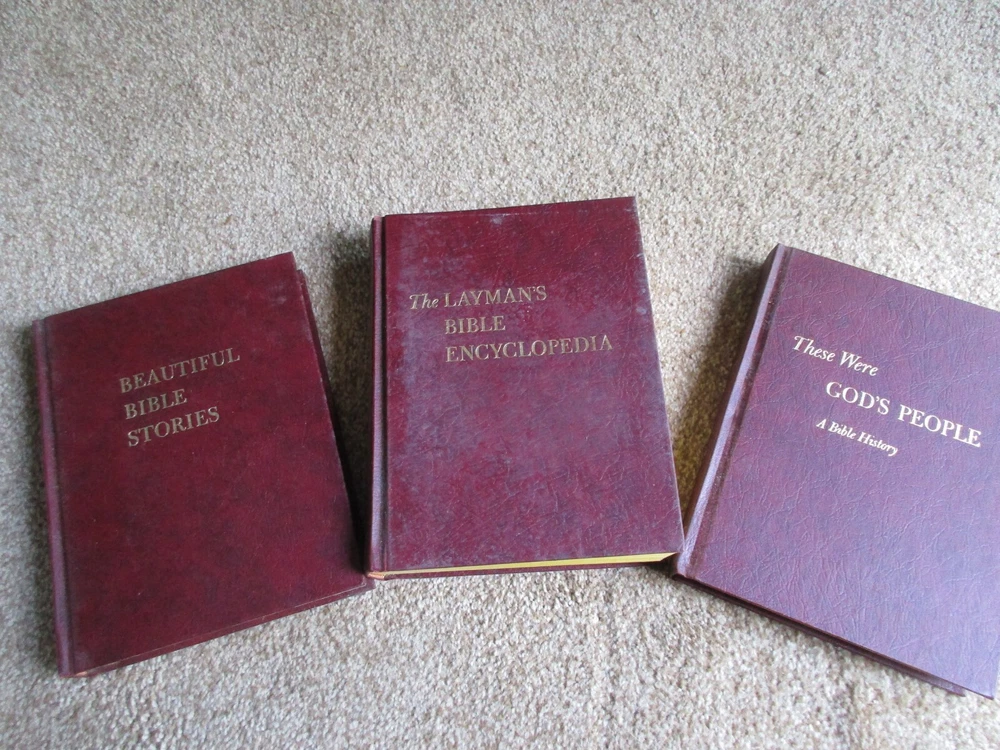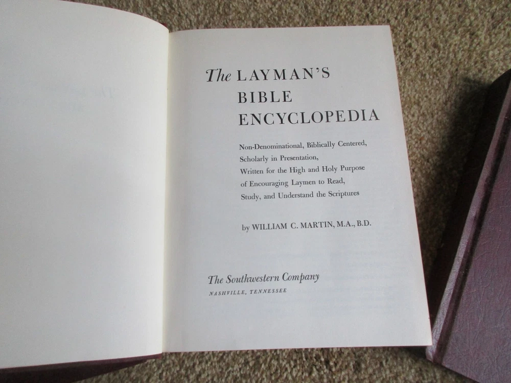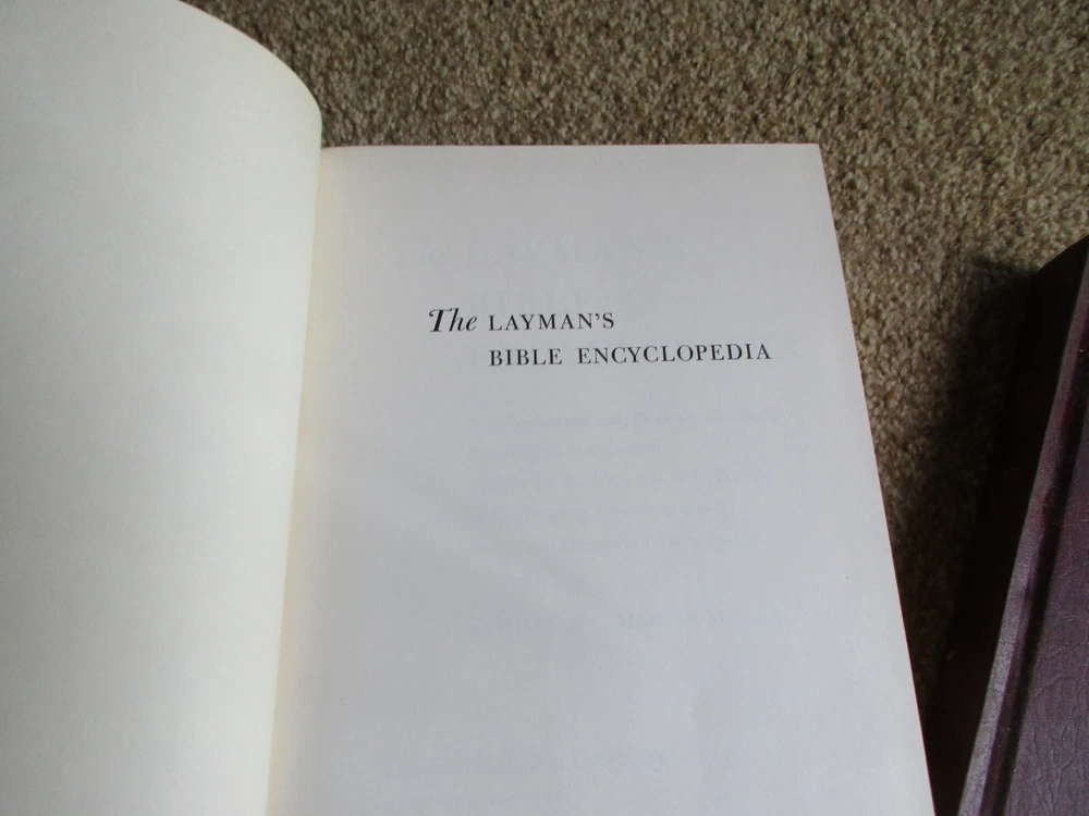 Nice, complete Vintage Set - THE LAYMAN'S BIBLE LIBRARY 3 Volume set The Layman's Bible Encyclopedia, Beautiful Bible Stories & These Were God's People Comes with a cardboard case that is not in good shape (Taped together) The books themselves are in very good condition. No writing, underlining, highlighting, rips or stains. Bindings are firm...no loose or missing pages. The Southwestern Company, Nashville TN USA 1964-66 BX-BK-6