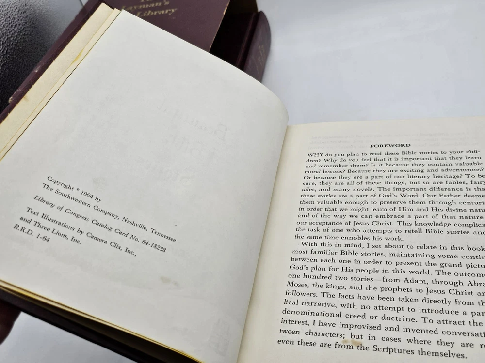 The Layman's Bible Library is a 3-volume box set of books by Southwestern Commentary from 1964. The books are leather-bound and illustrated, providing commentary on Christianity and the Bible in English. These Were God's People ~ A Bible History 1966 Beautiful Bible Stories 1964 The Layman's Bible Encyclopedia 1964 Item will ship within 1 day Let me know if you have any questions Thanks for Looking!