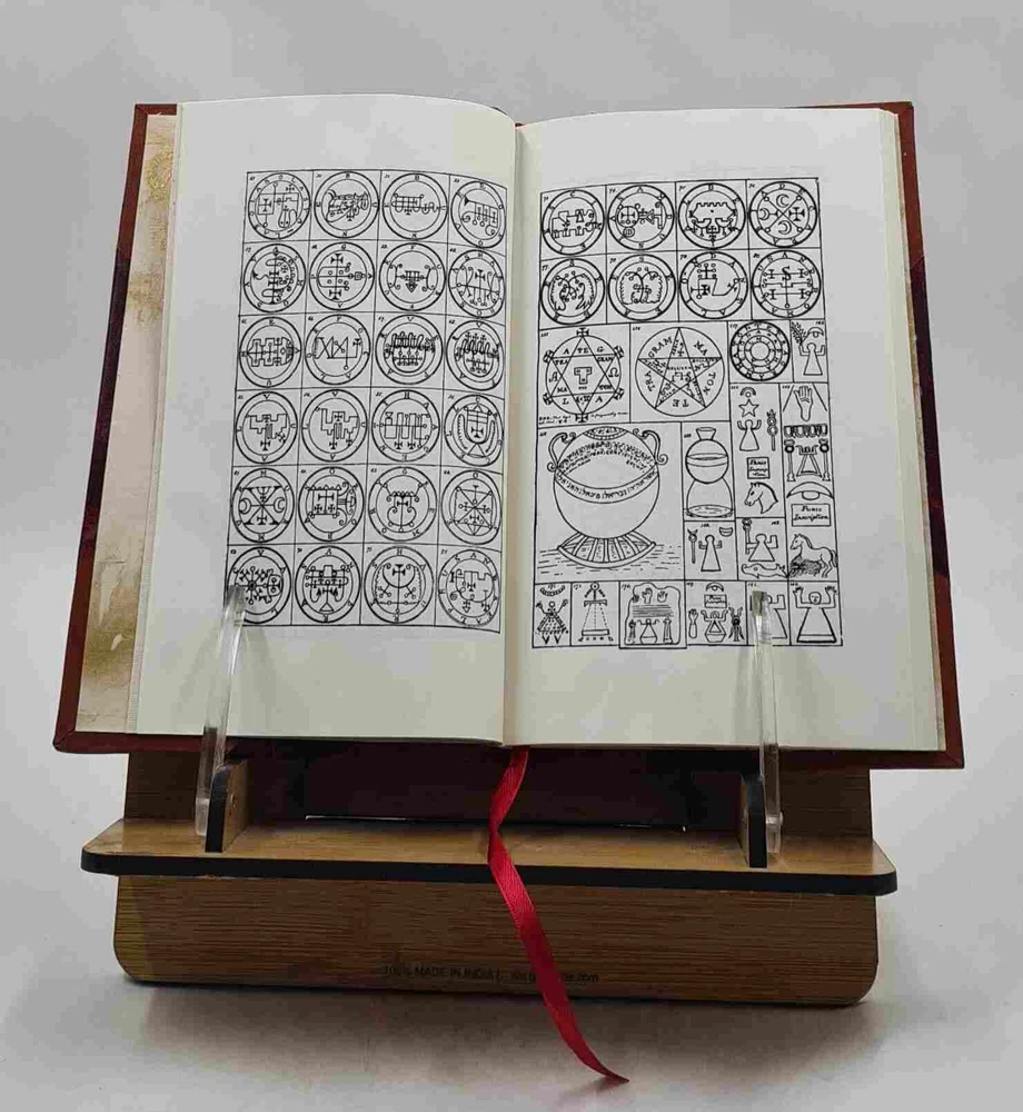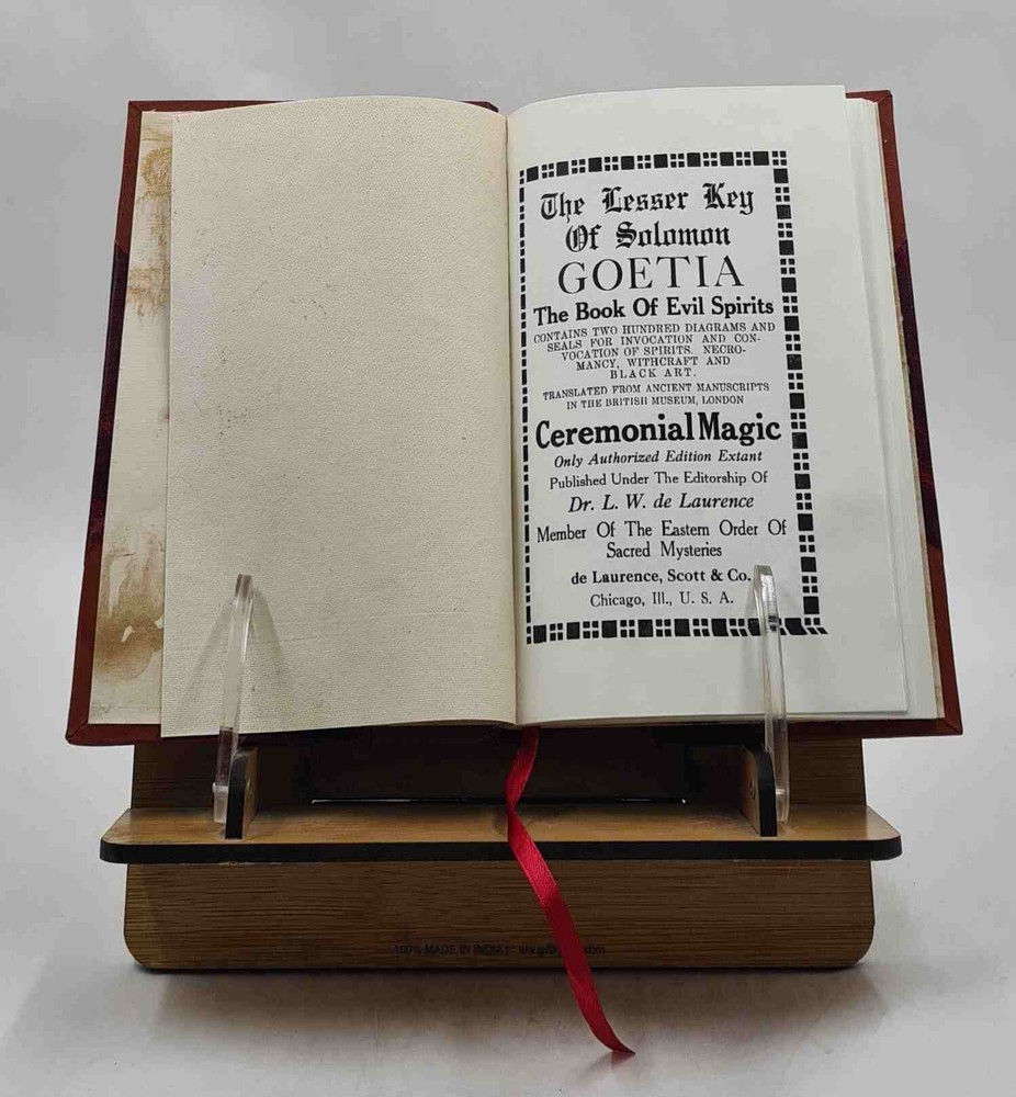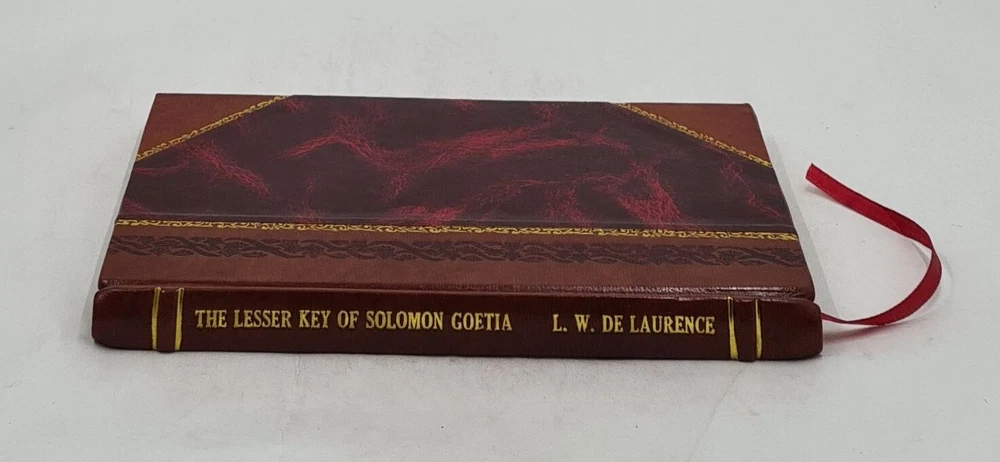 About the Book: Complete Title: The Lesser Key of Solomon Goetia The Book of Evil Spirits 1916 [Leather Bound] Author: L. W. De Laurence Edition: Reprinted by Gyan Books in 2013 with the help of original edition published long back [1916] . Language: English No. Of Pages: 92 Binding: HALF LEATHER binding features a leather spine and corners with the remaining cover in Raxine or Marble Paper. CHOOSE ANY LEATHER COLOR OF YOUR CHOICE WITHOUT ANY EXTRA CHARGES JUST CLICK ON IMAGES FOR OPTIONAL COLORS AND INFORM US YOUR CHOICE THROUGH MAIL WITH COLOR CODE. Customization Options Available Upon Request We provide 'Extra customization*' on request with additional charges. Please note that customization charges are applied in addition to the listed item (Book) price. Customization Extra Charges Sample Image FULL LEATHER BOUND WITH GILDED EDGES (ANY COLOR) USD 35 MULTI-COLOR LABELS (Spine) USD 12 PERSONALIZED IMAGE EMBOSSING ON THE FRONT COVER USD 40 FOLIO EDITION (12x18.5 inches) BIGGER SIZE Six times of the given price Points to note before booking order: SPECIAL DISCOUNT FOR BULK ORDERS PLEASE CONTACT US. UNIQUE LEATHER-BOUND Edition on Spine and Corners along with Golden Leaf Printing on Round Spine. This book is: Printed in Black & White (If a color edition is available you may request it by mail for a nominal charge.) Sewed binding for longer life Printed on high quality Natural Shade Acid Free Paper Professionally processed without changing its content Genuine Leather is being used for Binding Handcrafted Golden Leaf Printing. Round Spine Handmade Marble paper use for end paper Raise bands Bookmark Ribbon As these are old books each page is processed manually to make them readable. But in case some pages are blur or missing or have black spots the same are re-printed as it is to keep the authenticity of the book. In case of multi volume sets please note that the above listing is for a single volume only. (To order multiple volumes please contact us separately). We request you to understand that these leather-bound books are work of art and hence require time to go through different process to be the masterpieces that they are. We usually take 20 business days as handling time to dispatch shipment. We consider special request for a special occasion. Craftsman based in India prepared this book and shipped from different stock locations around the Globe. PRODUCT DISCLAIMER: Please be aware that because leather is a natural material slight discoloration or change in texture may be visible. ABOUT US GYAN BOOKS INTRODUCING A REMARKABLE LEATHER-BOUND EDITION, METICULOUSLY CRAFTED BY THE ESTEEMED INSTITUTION: RARE BIBLIO A UNIQUE LEATHER-BOUND BOOK FOR ELITE READERS/COLLECTORS OF OLD RARE AND BESTSELLING BOOKS. An ORIGINAL LEATHER is being used for Binding this Book on SPINE AND CORNERS along with GOLDEN LEAF PRINTING {Half Leather}. We deal into reprinting of the masterpieces crafted by authors around the world. We are proud to say that we have a collection of over 25 million books and our collection includes books that are as old as 200 years and hence are considered as RARE BOOKS. We are pioneer in this field having experience of 40 years. We also undertake printing and Leather Binding jobs of other books. Thesis printing and Leather Binding is one of our important services. Many publishers and authors approach us for their books to bind in our unique leather binding format for their special customers. Our craftsmen are active in this job since generations. Restoration of old books is our expertise. We are known by our Customization options. We have many leather color options in our bucket. The whole process is done manually so that it gives you the same feeling of old book.