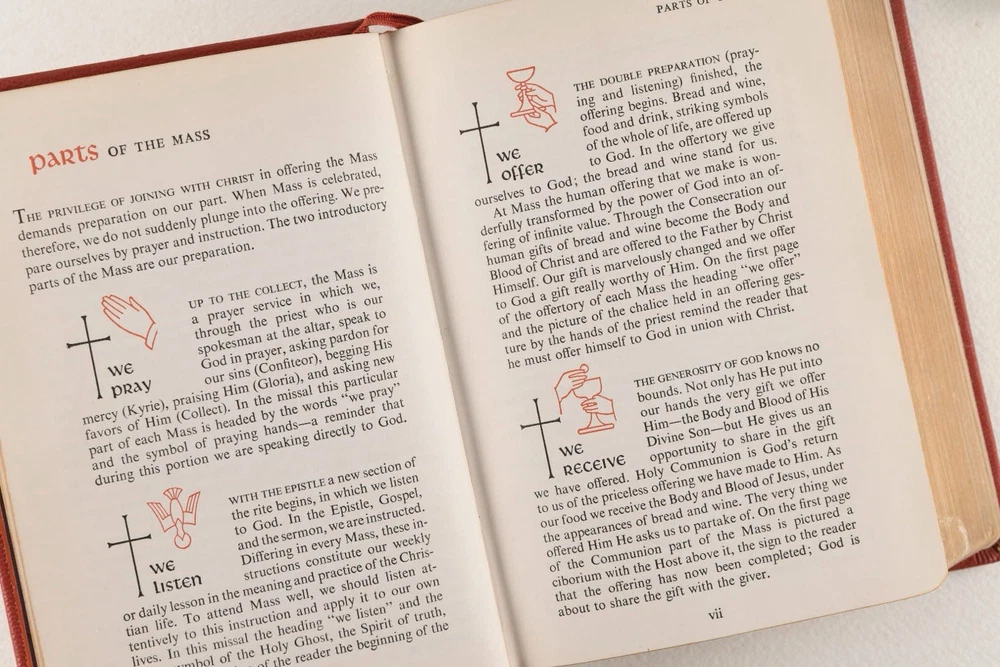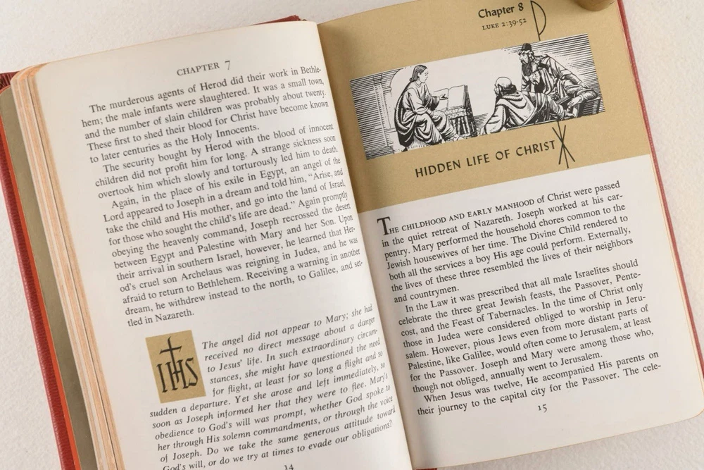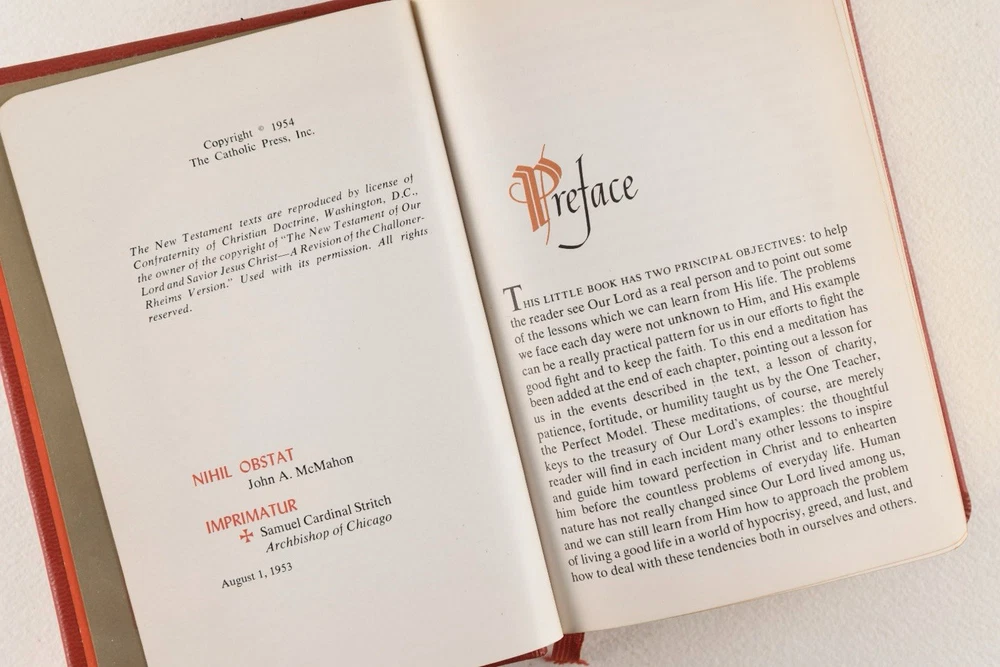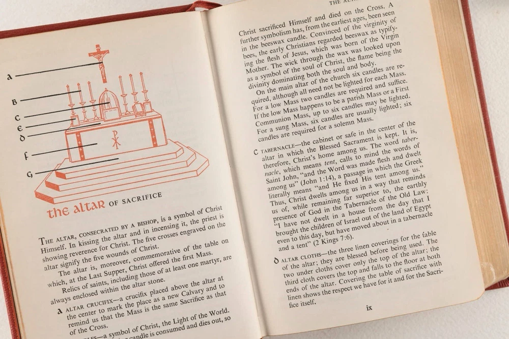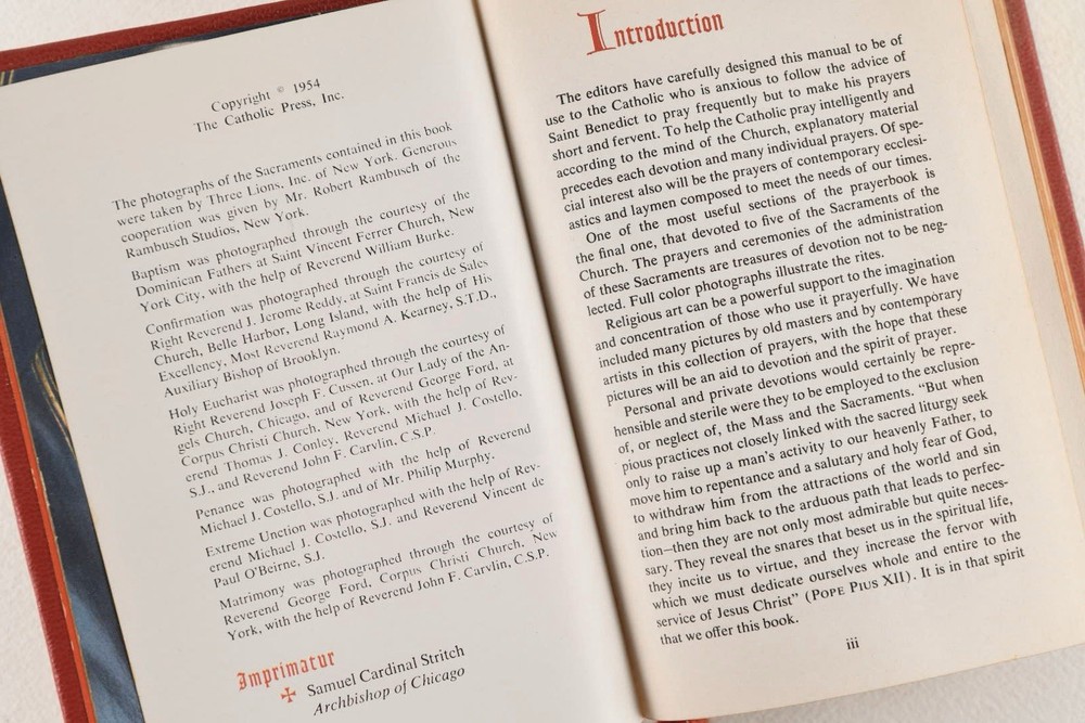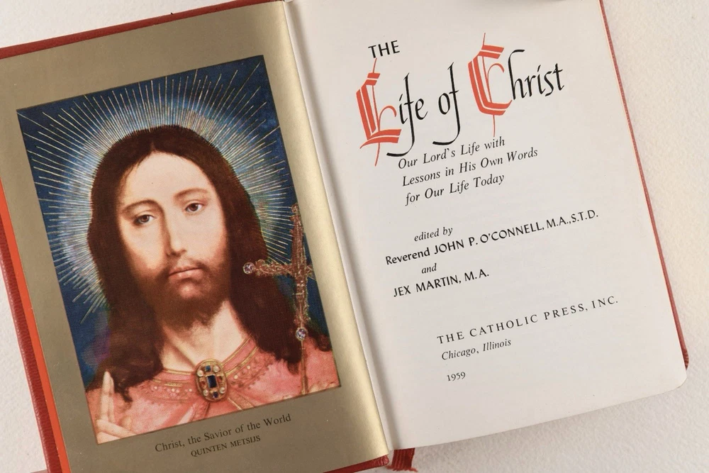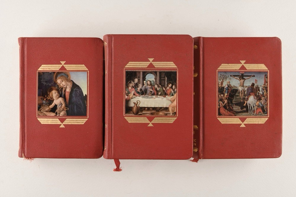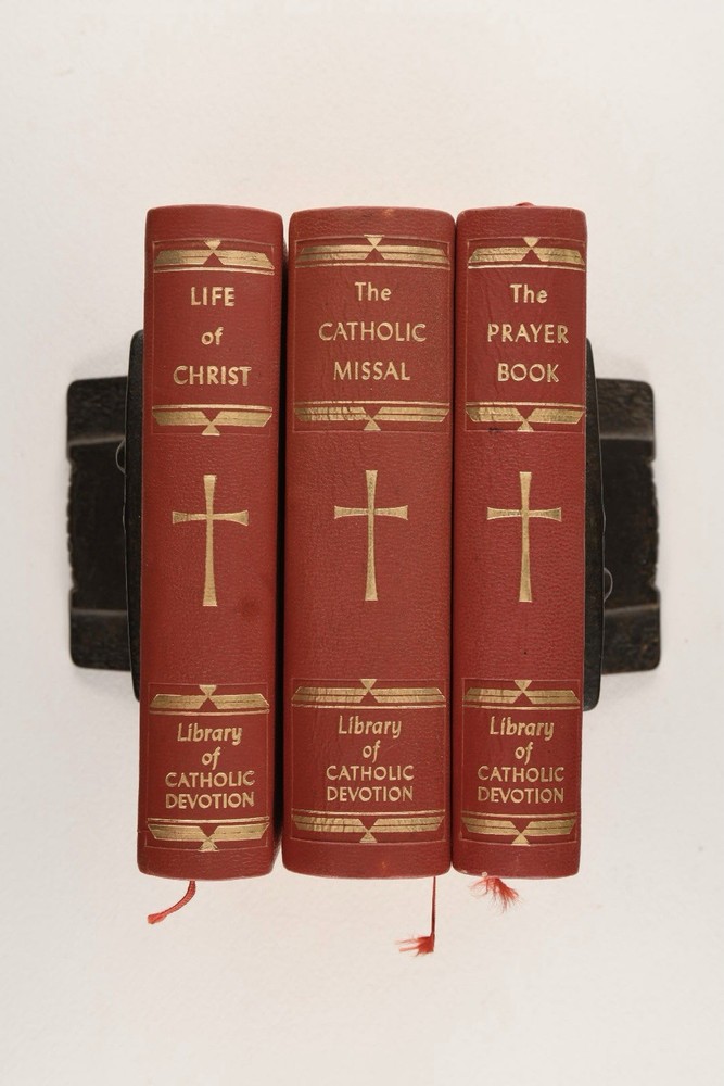 The Library Of Catholic Devotion Vintage Set 3 Volume Book Set 1954. Life of Christ, The Catholic Missal, The Prayer Book. Red Leather, gilt edges. Very Good Condition.