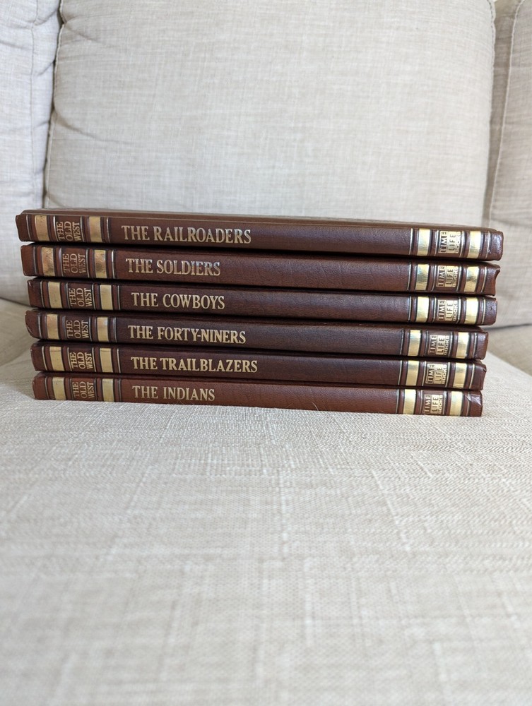 Set of six leather-bound books from the TIME-LIFE Books series "The Old West" Set includes: - The Railroaders (1973) - The Soldiers (1973) - The Cowboys (1973) - The Forty-Niners (1974) - The Trailblazers (1973) - The Indians (1973) See photos for conditions. Message with any questions.