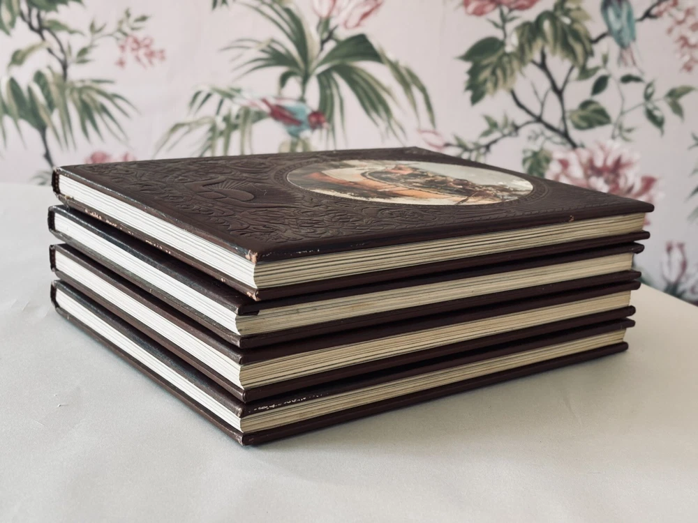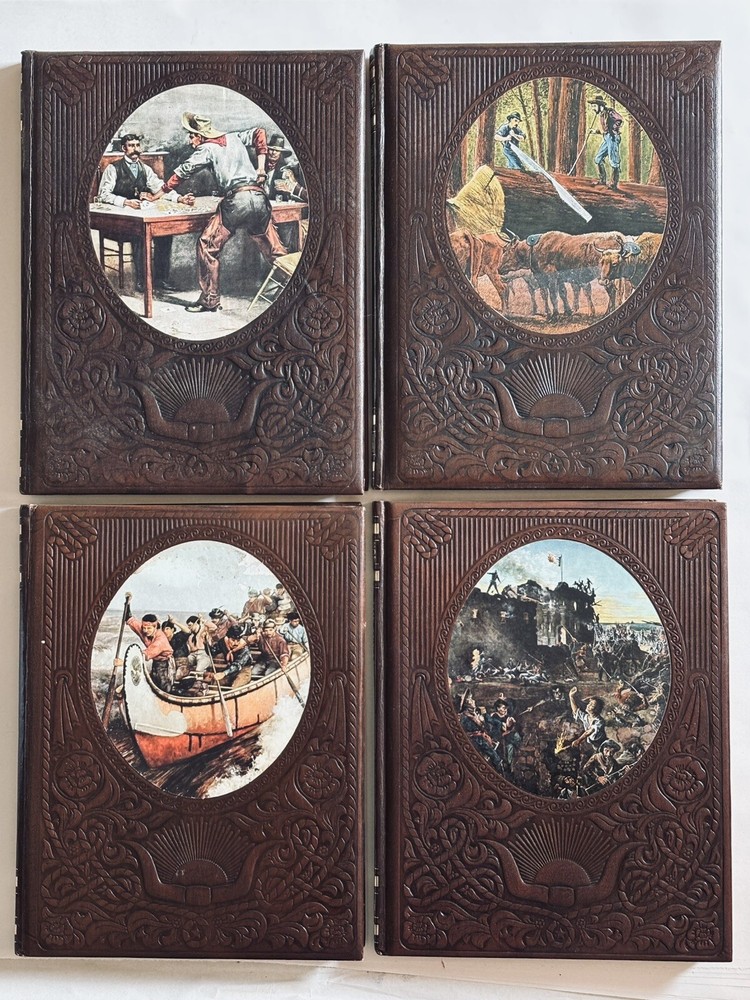 This 4-piece padded hardcover book set from Time Life Books is a must-have for any history or western genre enthusiast. The books are vintage from the 1970s and provide a glimpse into America's past through captivating illustrations and narratives on topics such as logging, gambling, and historical American life. The books are bound in faux leather and measure 11 inches in length and 8 inches in width, with 240 pages each. The intended audience for this set is young adults and adults.