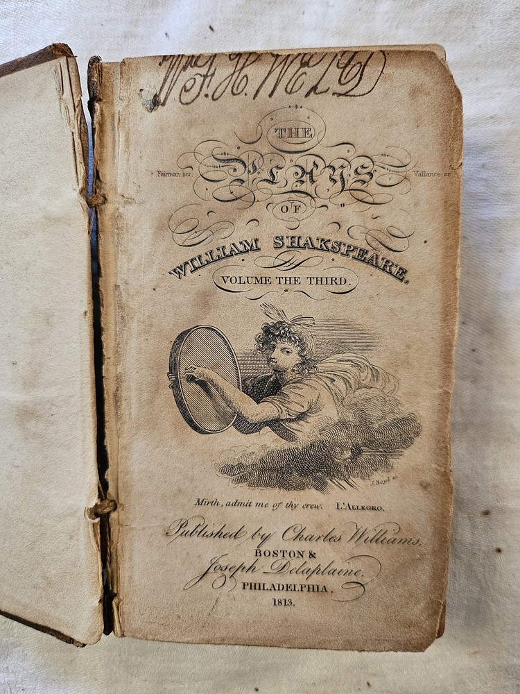 HGG Books presents ... The Plays of William Shakspeare miniature 4 of 6 volume miniature set Author: Shakspeare, William; Isaac Reed Publisher: Charles Williams; Joseph Delaplaine Release Date: 1813 Seller Category: Literature Qty Available: 1 Condition: Collectible: Acceptable Sku: shakspearereed Notes: The Plays of William Shakspeare from the text of Isaac Reed. Includes 4 volumes of 6 volume set, # II, III, IV, VIncludes Henry VI, Richard III, Henry VIII, Coriolanus, Julius Caesarm Antony and Cleopatra, Timon of Athens, Titus, Pericles, Troilus and Cressida, Macbeth, King John, King Richard II, Henry IV, Henry V, Comedy of Errors, Midsummer-Night's Dream, Merchant of Venice, As You Like It, Taming of the Shrew, Twelfth-Night, and Winter's TalePages clean with foxing to title pages, text block binding solid, hinges weak or separating, heavy rub wear to leather, heavy cracking and chipping to leather at spines Don't forget to check out other great deals in our eBay Store!!