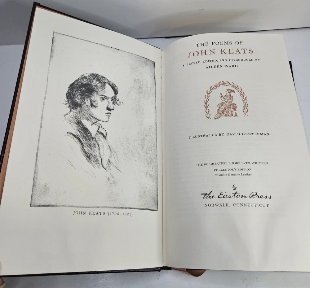 Delve into the lyrical world of John Keats with this exquisite leather-bound collector's edition of his poems, published by Easton Press in 1980. A treasure for literature enthusiasts, this edition is crafted with care, featuring illustrated pages that bring the timeless beauty of Keats' verse to life. This limited edition is a testament to the enduring appeal of classical poetry, making it a splendid addition to any collection. It's not just a book, but a piece of art that celebrates the English language and the legacy of one of literature's greatest sons. Own a slice of literary history with this beautifully preserved edition, perfect for both display and enjoyment.