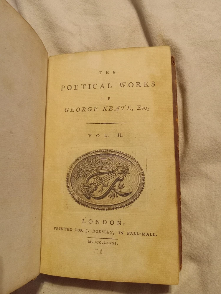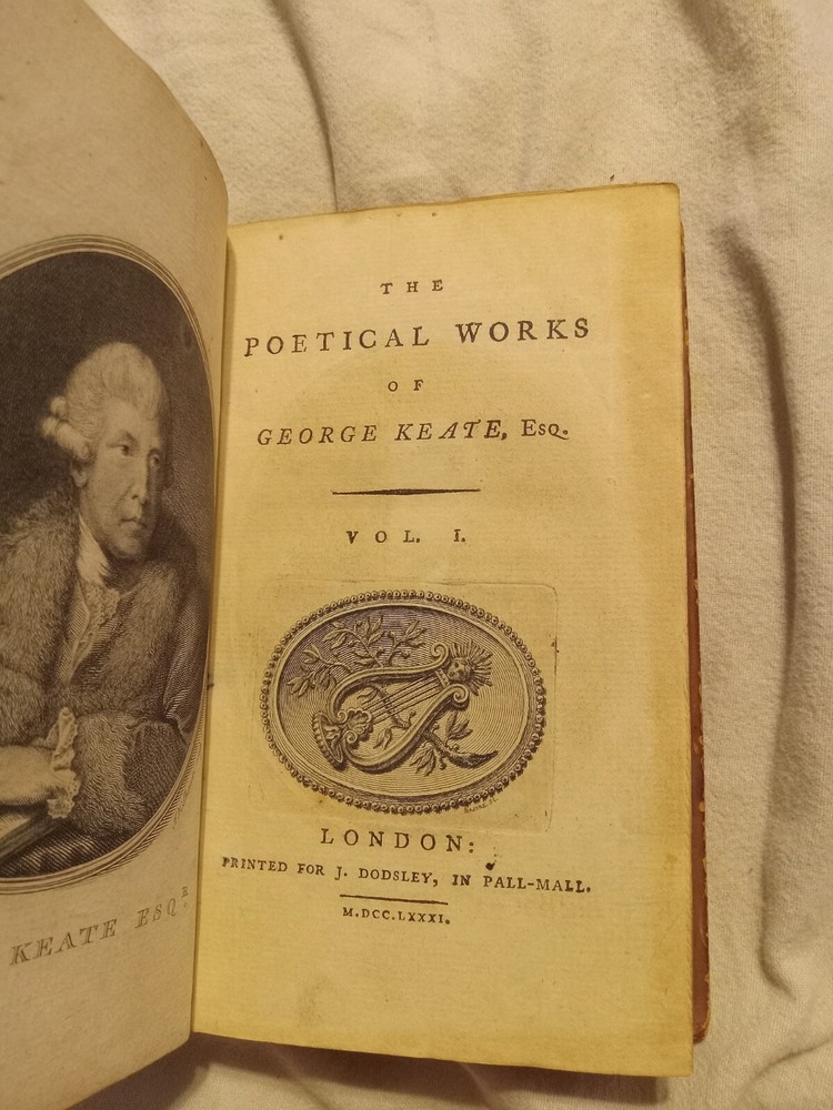 The Poetical Works Of George Keate 1781 2 vol set antique. In fair condition boards are detached but otherwise pages are clean please see photos