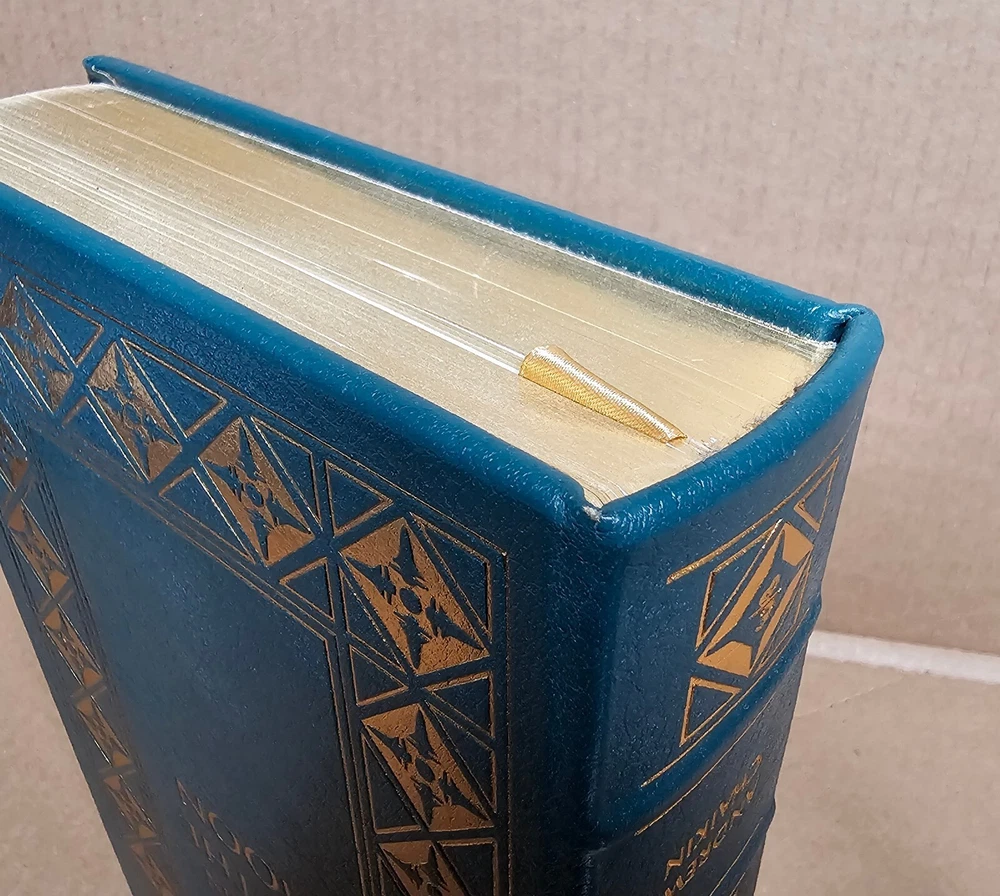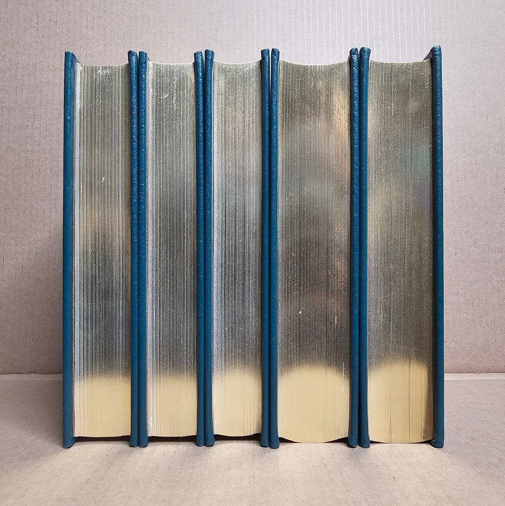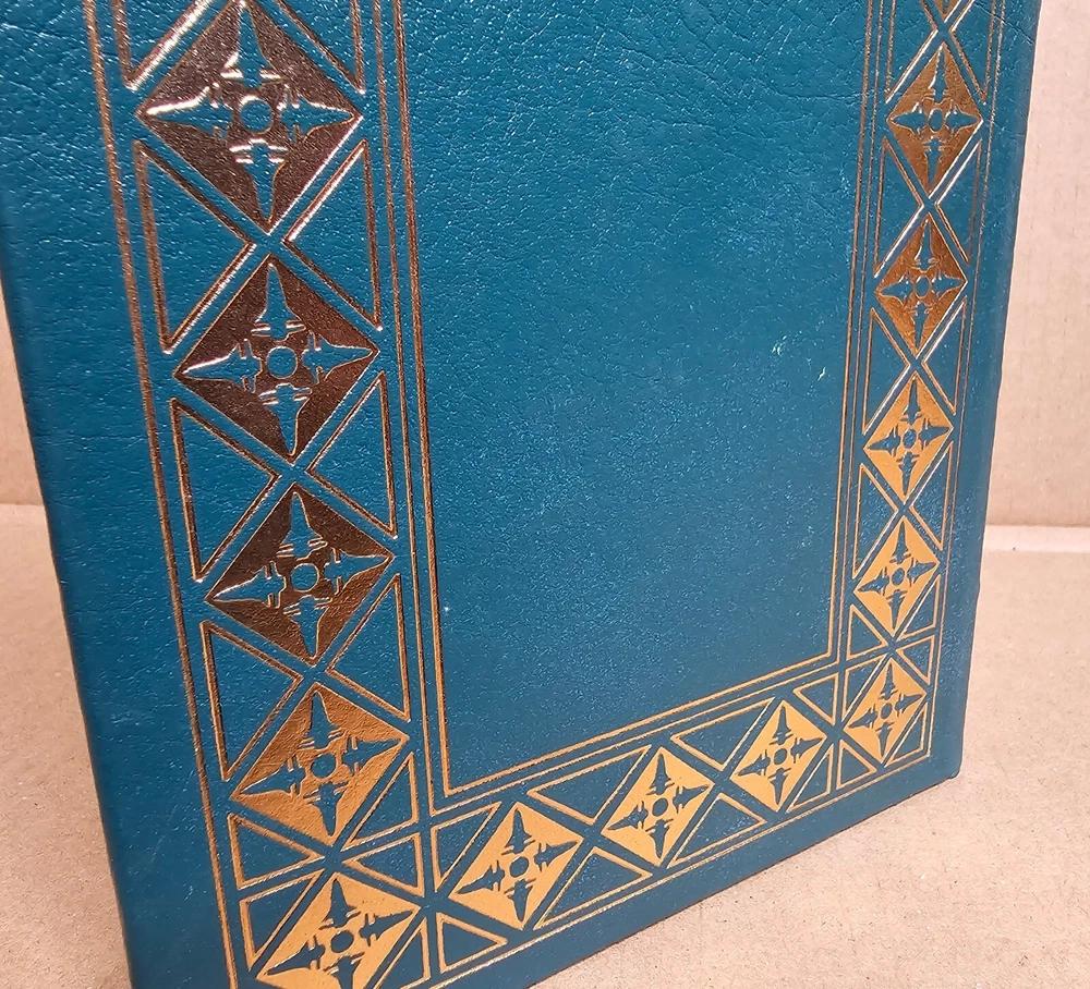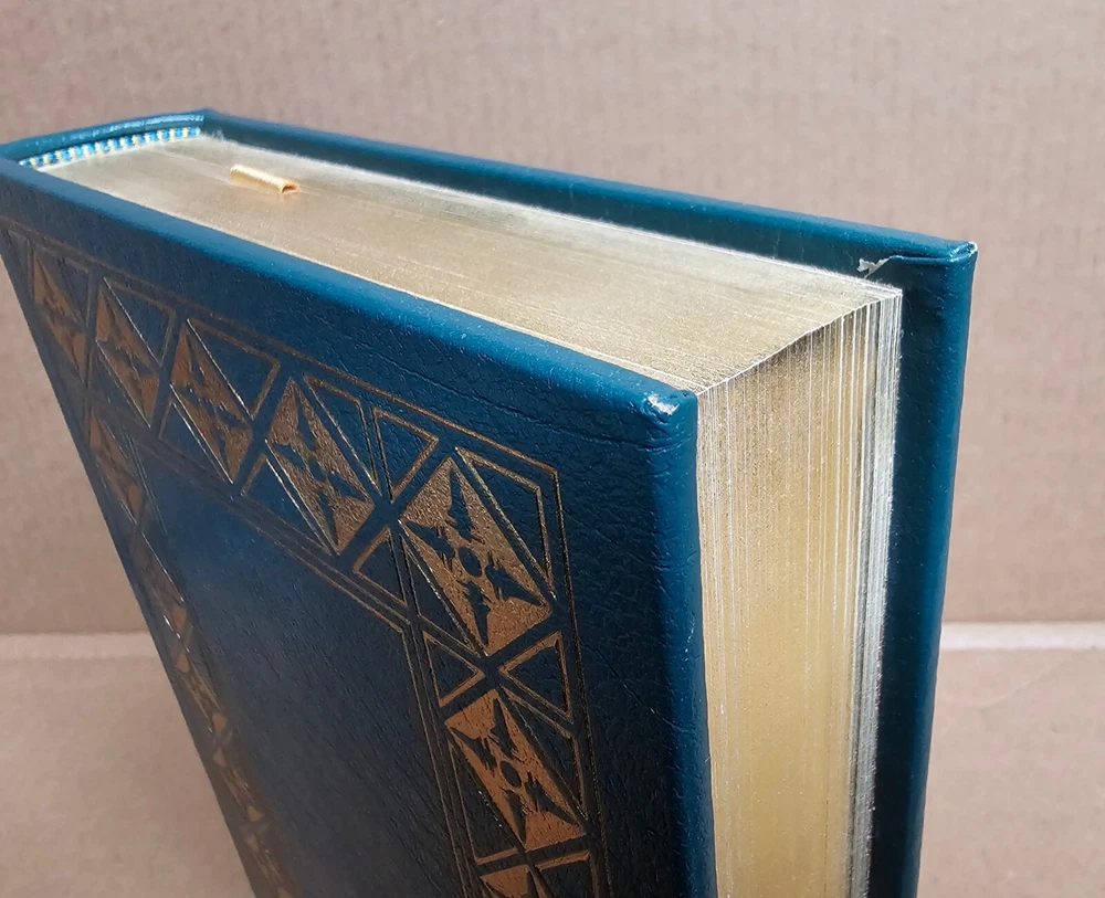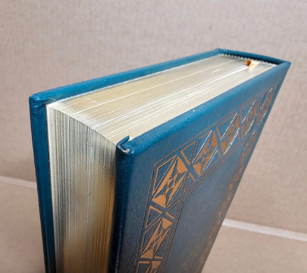 5 volume Easton Press set. Leather Bound. A Man on the Moon by Andrew Chaikin This New Ocean by William E. Burrows First on the Moon by Neil Armstrong, Michael Collins and Edwin E. Aldrin, jr. Apollo: The Race to the Moon by Charles Murray and Catherine Bly Cox The Right Stuff by Tom Wolfe Easton Press edition as pictured. Exterior leather in very good condition with minor rubbing/wear (see photos). The bindings are rock solid. Interiors are like new other than "A Man on the Moon" that has a name written behind front cover with gold colored ink (interior is otherwise crisp and clean). No book/name plates. Slight wear to gold gilding on textblocks. Still, a very nice set that will be carefully packaged and shipped within 48 hours M-F. [x]
