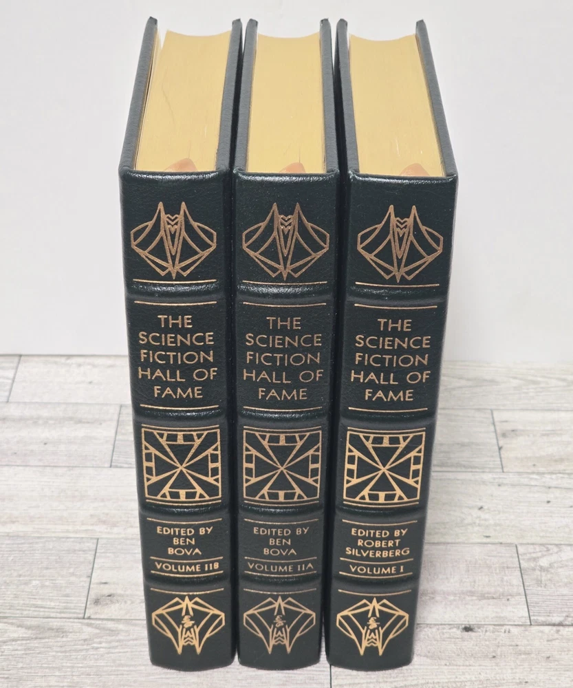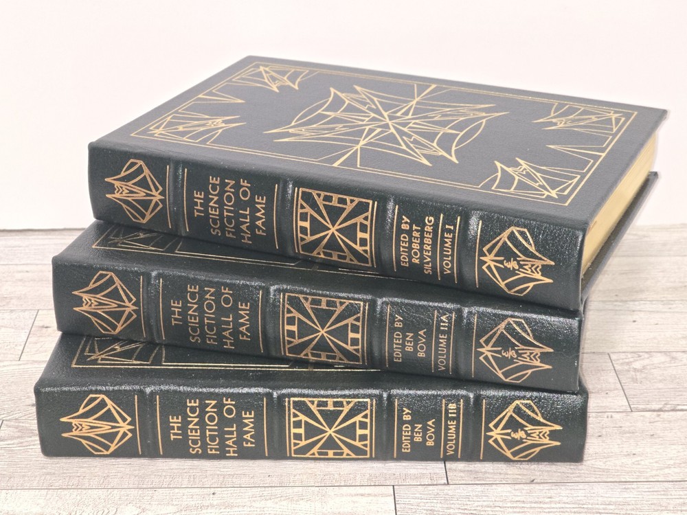 The Science Fiction Hall of Fame Three volume set. Volume one, volume II A, and volume II B Easton Press - Printed and leather bound in the United States. Very nice condition, in my opinion. Look at pictures and make your own judgment. If you have any questions or need more pics, feel free to ask. AI description: This rare, collector's edition set of The Science Fiction Hall of Fame 3 Vol. Set (I, IIA, IIB) is a must-have for any science fiction enthusiast. With a beautiful leather binding and original content, this set is sure to impress. Edited by Ben Bova, this set features various authors and is published by Easton Press. It includes special attributes such as language in English and original/facsimile status. The topic of the set is science fiction, making it a great addition to any collection.