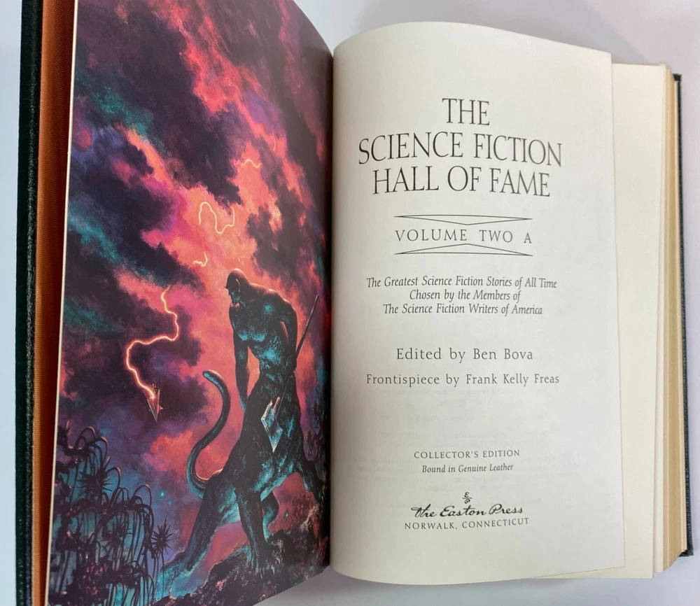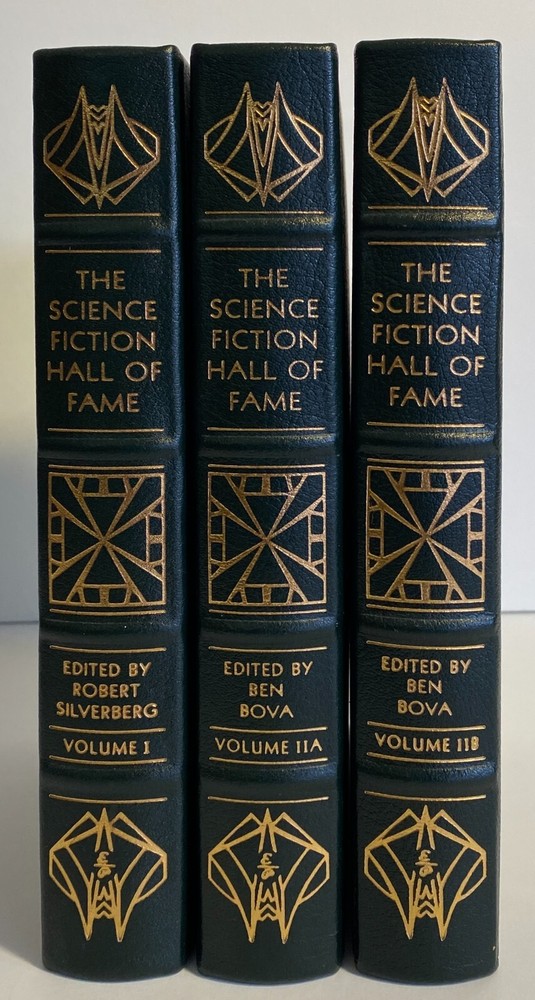 The Science Fiction Hall of Fame - 3 Volume Set (I, IIA, IIB)- Easton Press 2001 The Greatest Science Fiction Stories of All Time Chosen by the Members of The Science Fiction Writers of America Volume I : Edited by Robert Silverberg, Frontispiece by Hannes Bok Volume IIA : Edited by Ben Bova, Frontispiece by Frank Kelly Freas Volume IIB : Edited by Ben Bova, Frontispiece by Frank Kelly Freas These books are in excellent, unread condition. The Easton Press books are bound in genuine leather binding, with 22kt gold accents and hubbed spines, gilded page ends, acid-neutral paper, Moire fabric endsheets, and evocative illustrations and decorations. We will be happy to combine shipping, wherever possible. Some items cannot be combined because of their size, weight or because they are fragile. Please ask if you have any questions. Your order will ship by the next business day after receiving payment. All items are from a smoke-free environment. Thank you, and Happy Reading!