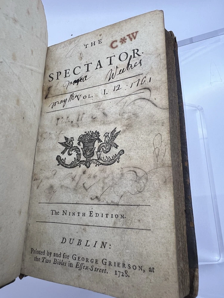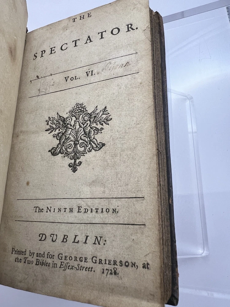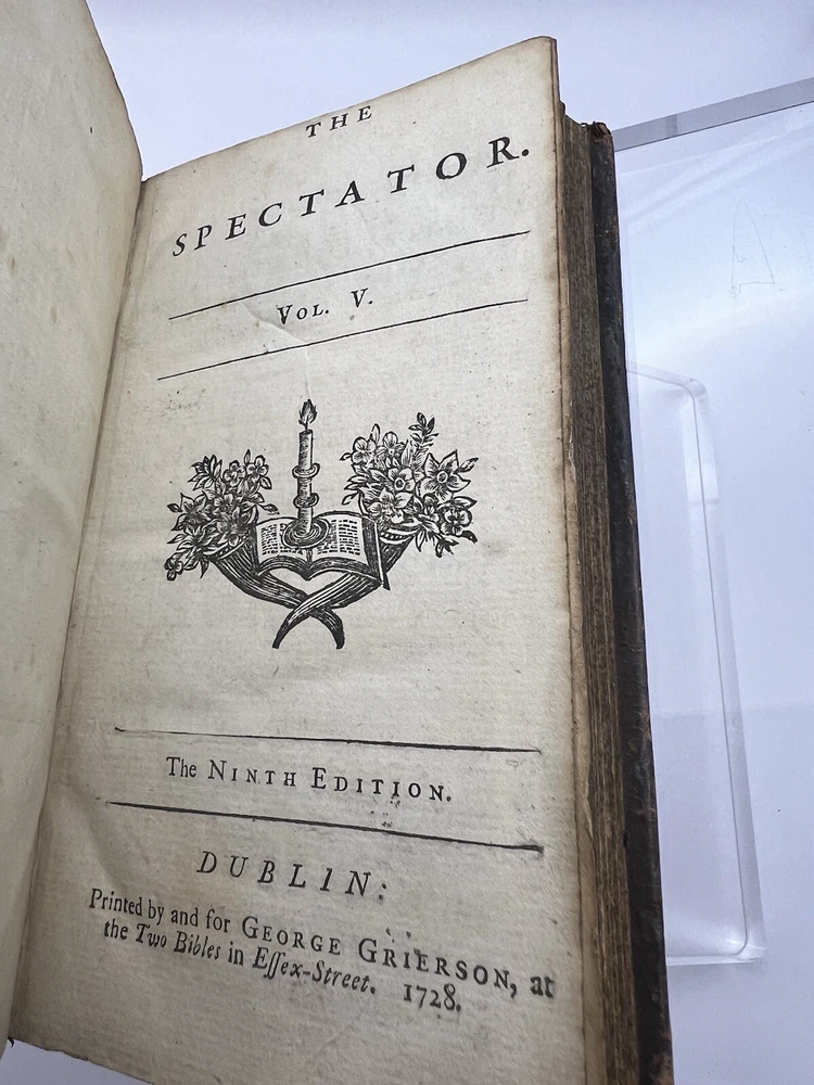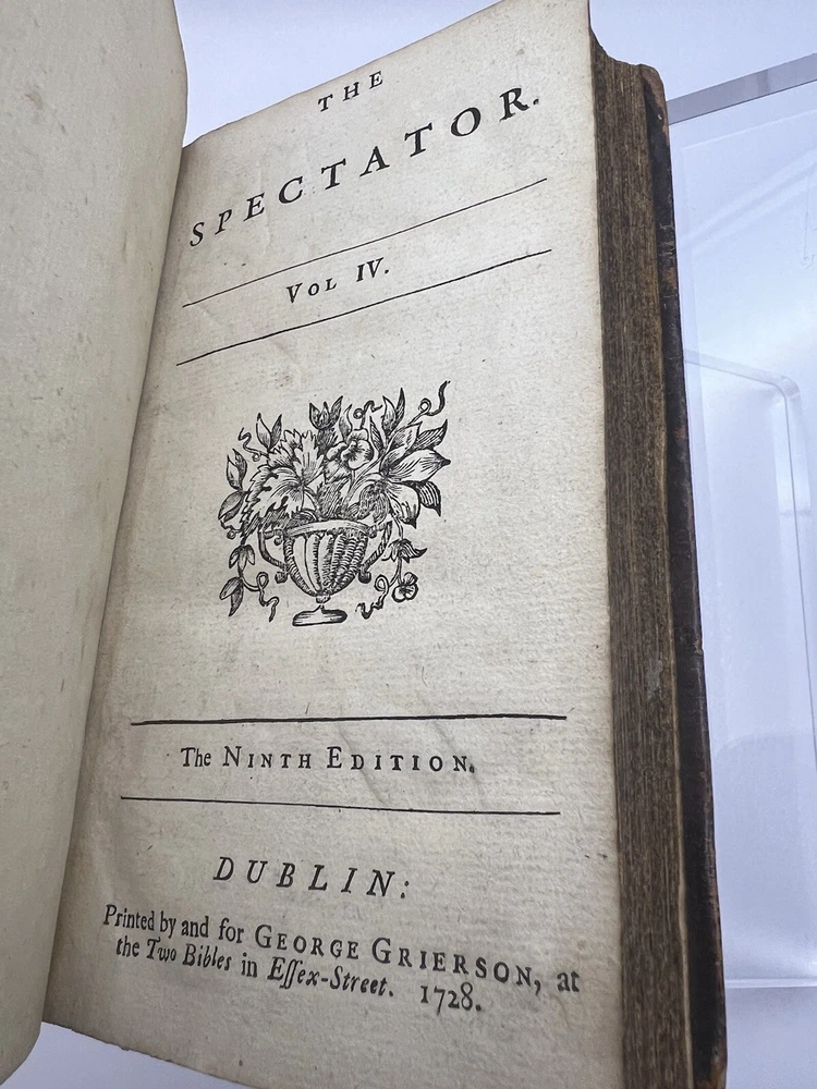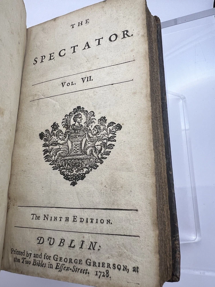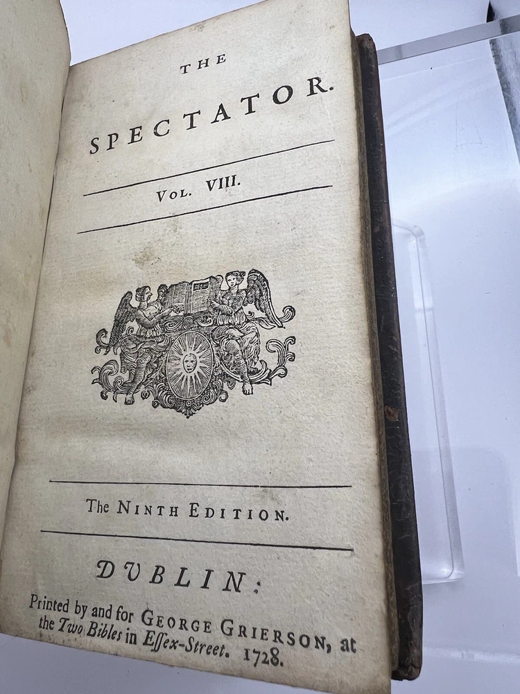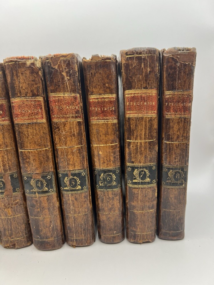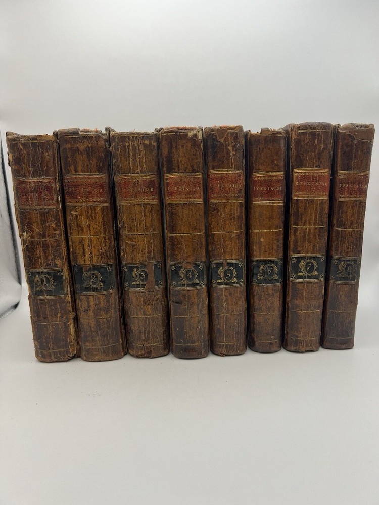 This is a rare and valuable set of The Spectator 9th Edition 1728 by Joseph Addison and Richard Steele. This 8-volume set is a must-have for any history enthusiast and features a leather binding, Dublin as the place of publication, and George Grierson as the publisher. The set is in its original form and was printed in English in 1728, making it a valuable addition to any collection. The set has special attributes and is a must-have for collectors of antique and rare books. It is a great topic for historical research and provides a glimpse into the history of Europe. The set is not personalized and has no signs of wear and tear. It is a great investment for any book collector and a valuable addition to any library.