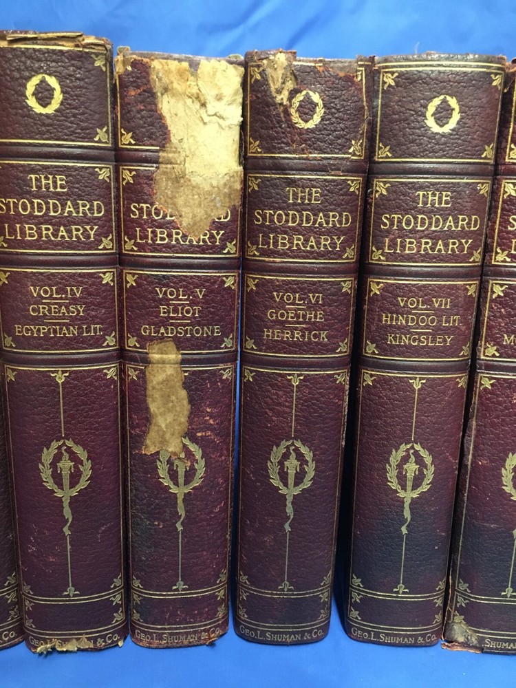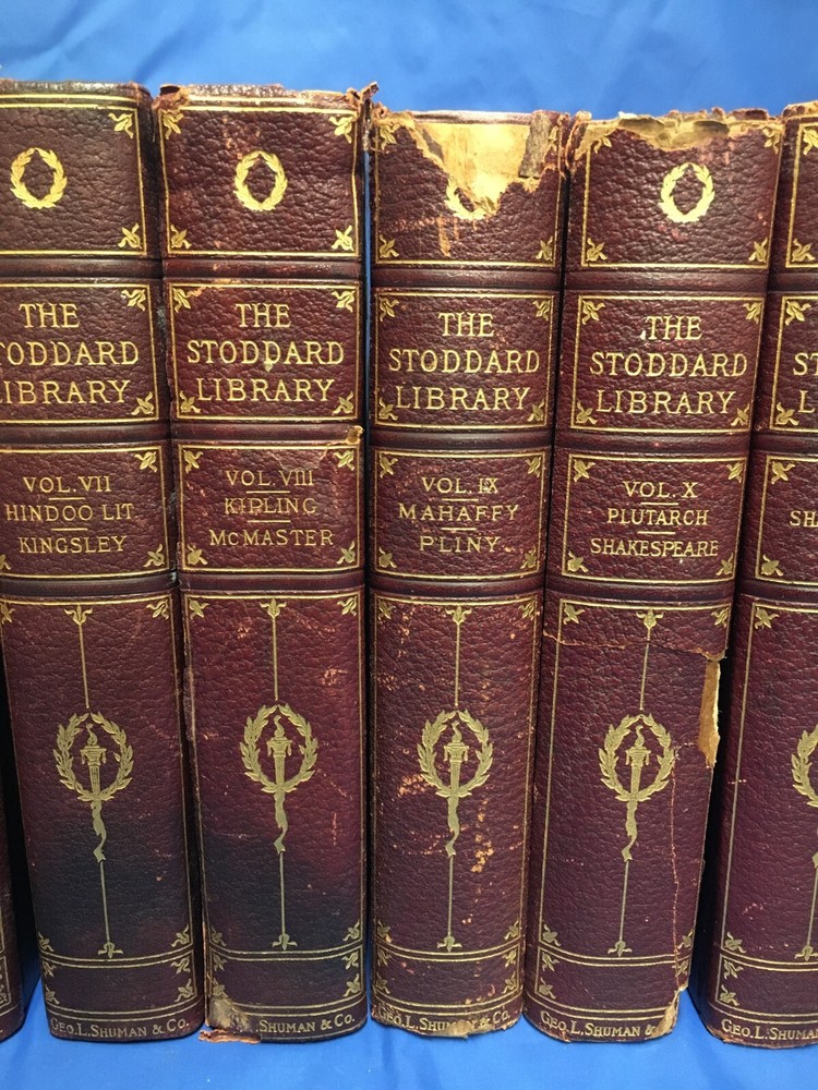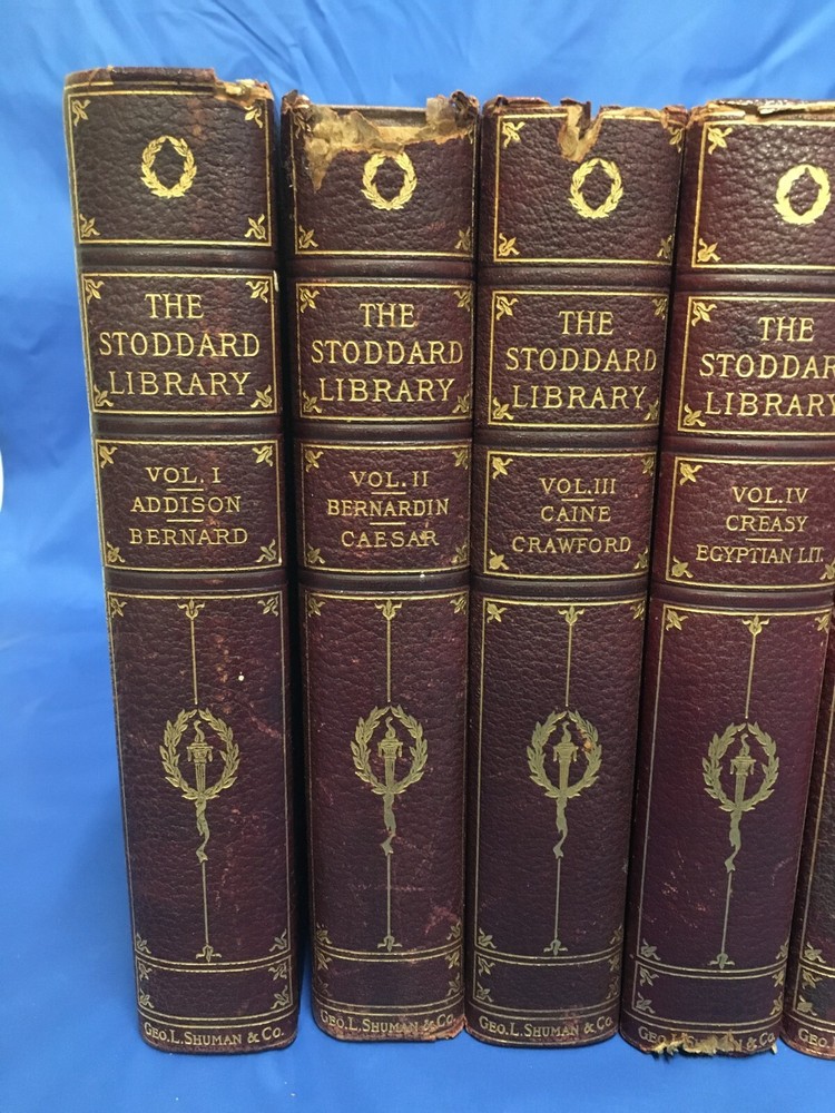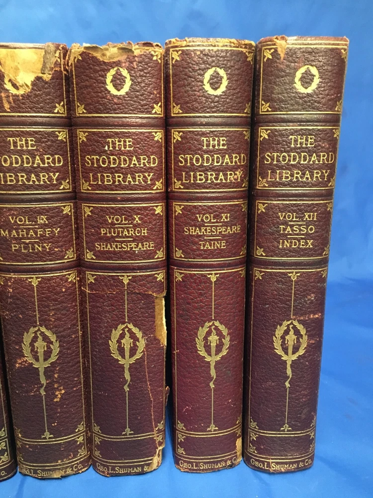 This 12-volume book set from The Stoddard Library is a rare find for collectors and enthusiasts of literature. The books are bound in high-quality leather and feature special attributes such as 1st edition status and original publishing by George L. Shuman & Co. The set includes works by various authors and covers a range of topics, making it a great addition to any collection or a unique gift for a book lover. The books are in great shape and have been well-preserved, ready to be treasured by generations to come. With their beautiful leather binding and original content, this set is a must-have for any serious collector. Thank You ! for taking a look.........