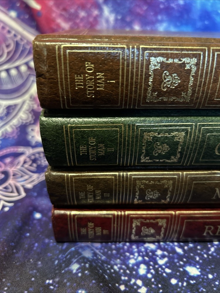 Delve into the captivating journey through human history with "The Story of Man, Volumes I - IV." This comprehensive set from the National Geographic Society offers a richly illustrated and meticulously detailed narrative that explores the evolution of society. Published in 1977 and bound in elegant faux leather, these hardcover books are a treasure for both young adults and adults alike, providing a window into the past with a blend of text and visual storytelling. Each volume measures 10 3/8 inches in length, 7 1/8 inches in width, and 1 inch in height, making for a substantial yet readable addition to your library. The series, crafted by various authors under the National Geographic imprint, is ideal for those intrigued by societal trends and the tapestry of human accomplishment. The books are also perfect for readers seeking a thorough understanding of historical patterns and the world's cultural heritage.
