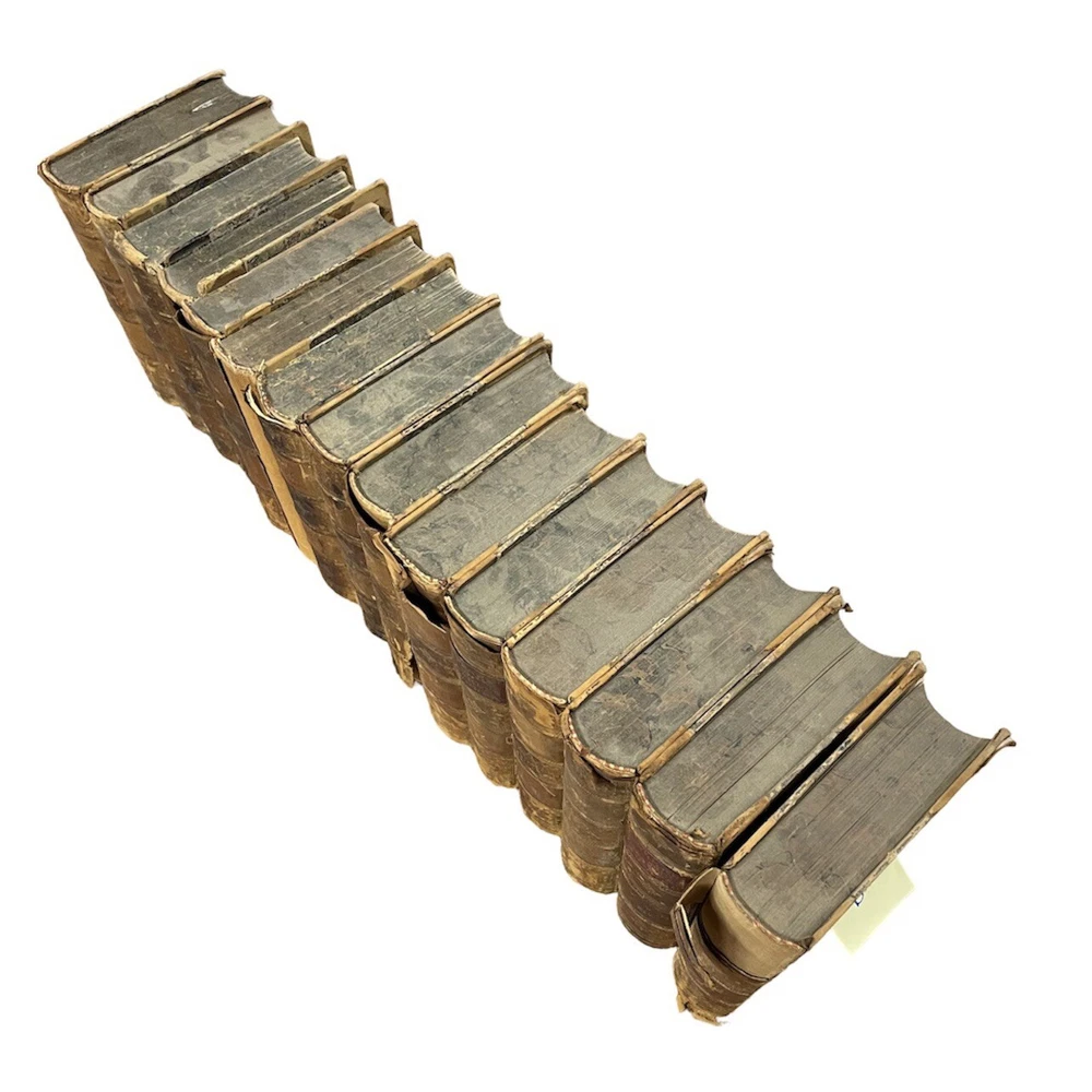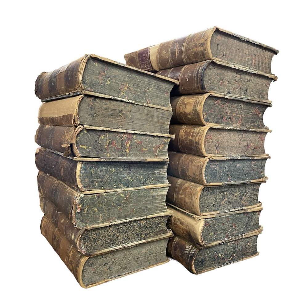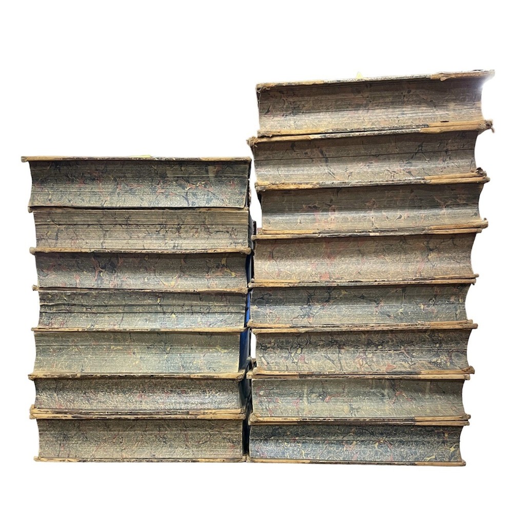 Fifteen volumes. Volume 1 is SIGNED by author Charles Sumner. Antique RARE complete set. 3/4 leather, tan leather (grey-brown), with marbled paper boards, all edges marbled matching, also endpapers; 4 raised bands, morocco title patch, gilt tooling on spine; gophered page edges. Hardcover books are pre-owned and in in decent condition for their age. Pages are intact and clean. Some books have detached or missing covers/back covers. See photos for further conditioning; books pictured on listing are the exact copies you will receive. Books will be individually wrapped and carefully packaged. Book 1 is in great condition. Book 2 is in great condition. Book 3 is missing both a front and back cover. Book 4's front and back covers are detached but included. Book 5 is missing a back cover, and the front cover's binding is weak. Book 6 is missing a back cover. Part of the spine is missing and the front cover is detached but included. Book 7 is missing a back cover. Book 8 is in great condition. Book 9's front cover is detached but included. The spine paper is attached but hanging off. Book 10 is in great overall condition. Some wear on spine. Book 11 is in great overall condition. Book 12 is in great overall condition. Book 13 is in great overall condition. Book 14 is in great overall condition. Book 15 is in intact, but the paper on the spine is hanging off the back cover. (34 pounds) For seller's use only: located on CYCLOPS 70