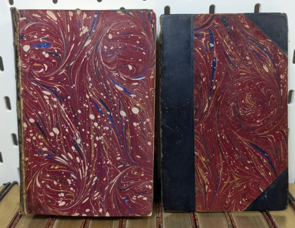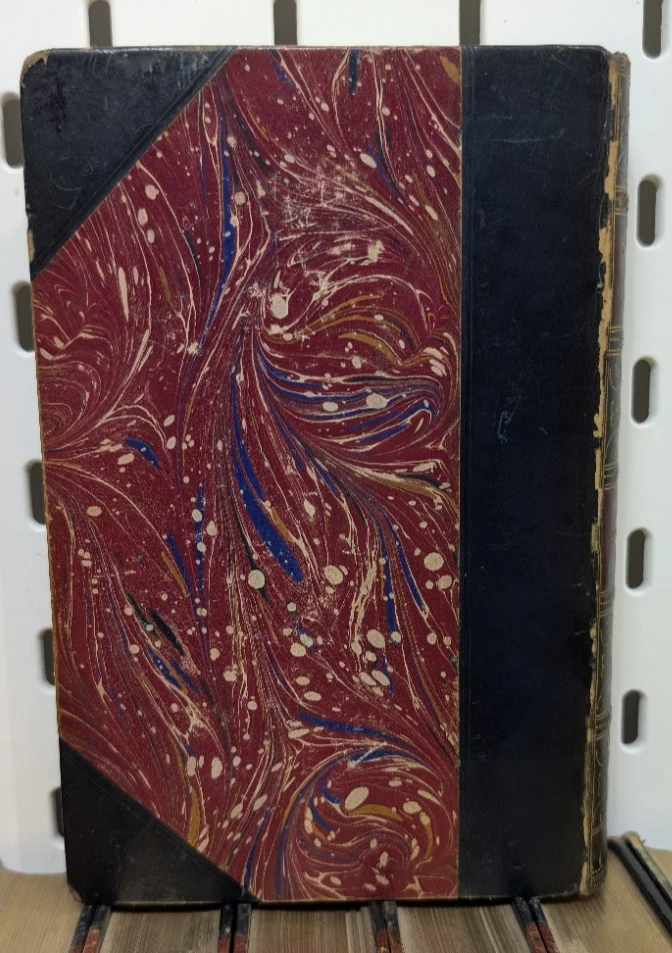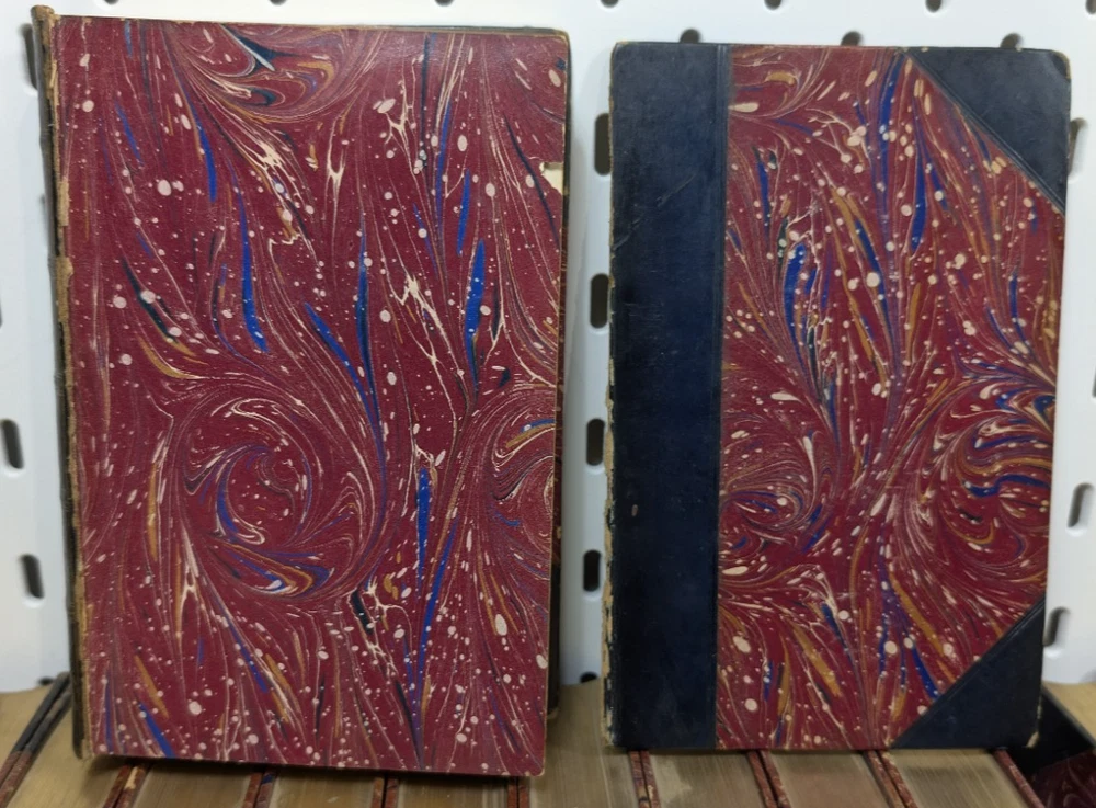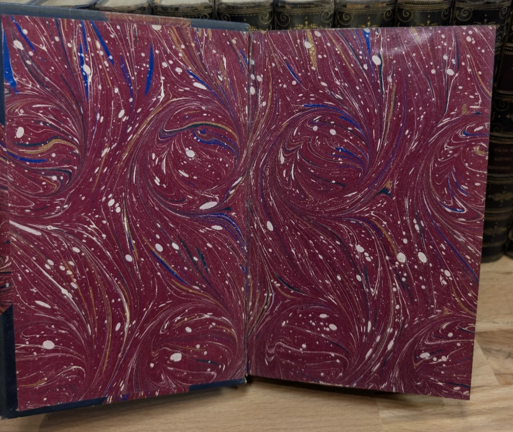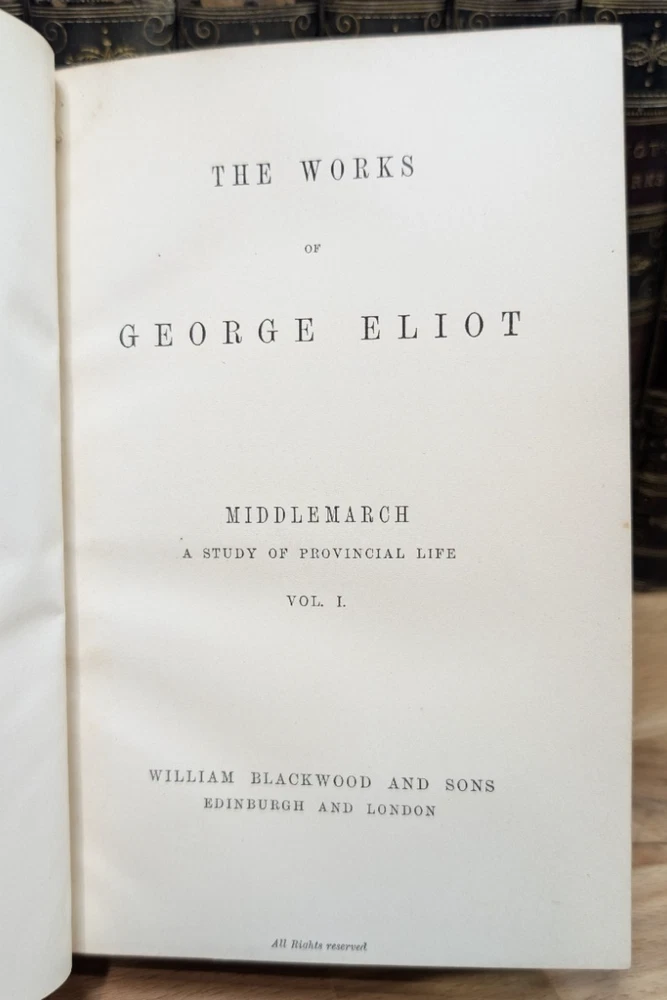 The Works of George Eliot. Cabinet Edition. William Blackwood and Sons. Edinburgh and London. No publication date, but likely published circa the 1880s. Books are 7 inches tall by 5 inches wide. A very handsome set in clean condition. The Cabinet edition was first published by William Blackwood and Sons in 1878. From the George Eliot Archive: "This complete collection, published two years before Eliot's death, represents the final corrected version of her works. Many subsequent editions have been published, with the Cabinet Edition as their foundation, which continues to be the scholarly standard for citing Eliot’s words." Half leather bindings with red marbled paper to front and rear boards. Raised bands and gilt stamping to spines. Matching red marbled endpapers. Top edges gilt. Leather is smooth and clean. Most volumes have wear/chipping along the edges and corners. Two volumes have detached front boards: Romola Vol. II and Daniel Deronda Vol. I (see last two pictures). Romola Vol. I has a large chip to the top of the spine. Some spots/foxing to page edges. A couple pages have tears/chips. Some heavy foxing to several endpapers. Pages are very clean overall, with several names or small notes pencilled inside the fronts of a couple volumes. Bindings are pretty firm. Check out my other books, movies, electronics, and other items for sale .