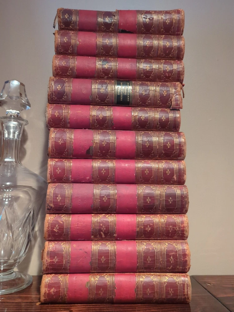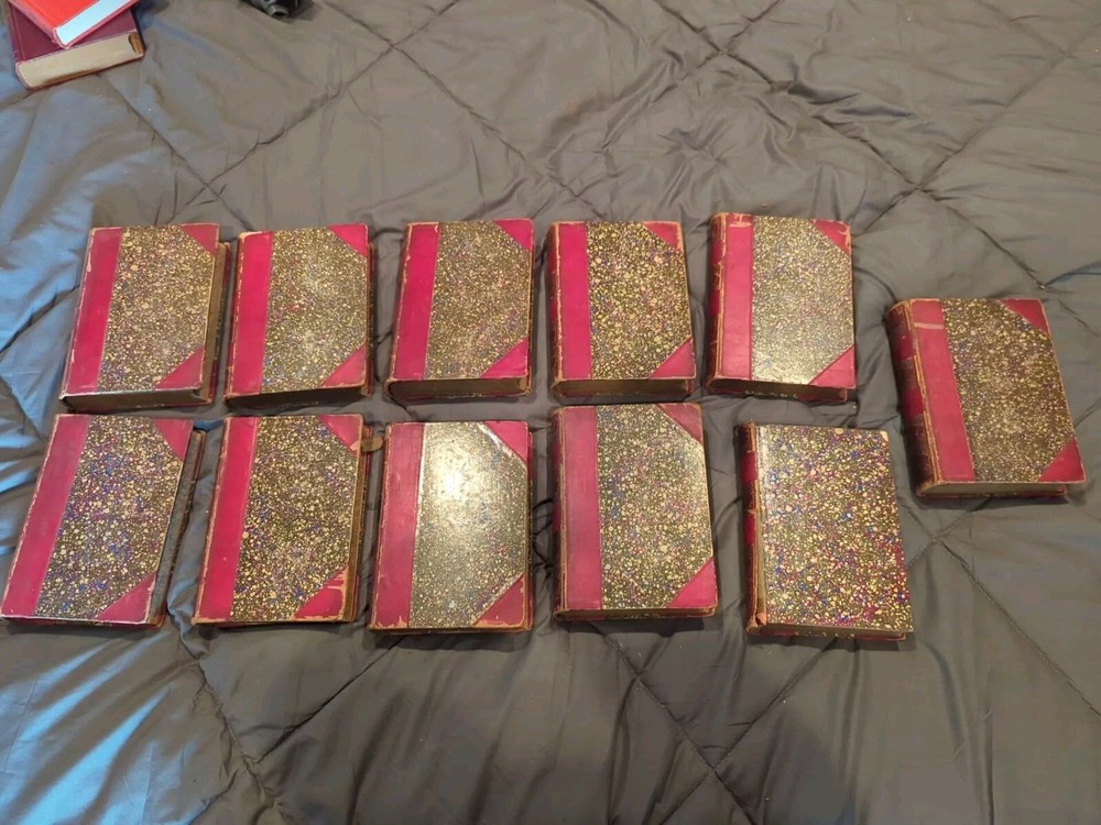 11 out of 12 books, missing first one in set. Please see pictures for condition. Books 5 and 7 have their front cover detached and book 9 is missing the front cover.