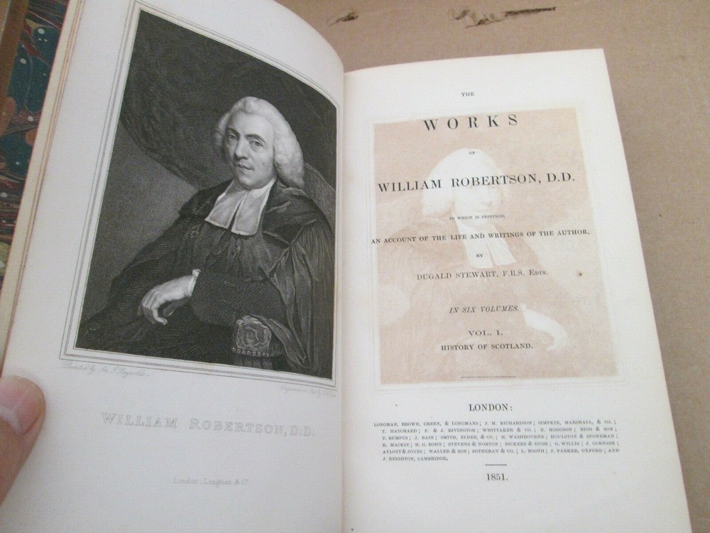 Hardcover. Condition: Very Good. Nicely bound complete 6 Volume set. Bound in full Tan leather. Marbled end papers and page edges. 6 paneled spine with gilt decorations and red and black leather panel inserts lettered in gilt. Gilt rules to the covers. Some scuffing to the leather, spines somewhat sunned but overall a clean and attractive set in nice condition. Contains SCOTLAND (2 vols) ; AMERICA (2 vols) & CHARLES V (2 vols) . Scarce thusly! ; 8vo 8" - 9" tall. Seller Inventory # 266141 I have been a USED and Rare Bookseller for 40 years, so I'm generally accurate in my descriptions and will pack everything well! Thanks for looking!