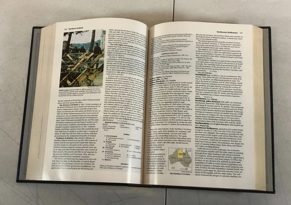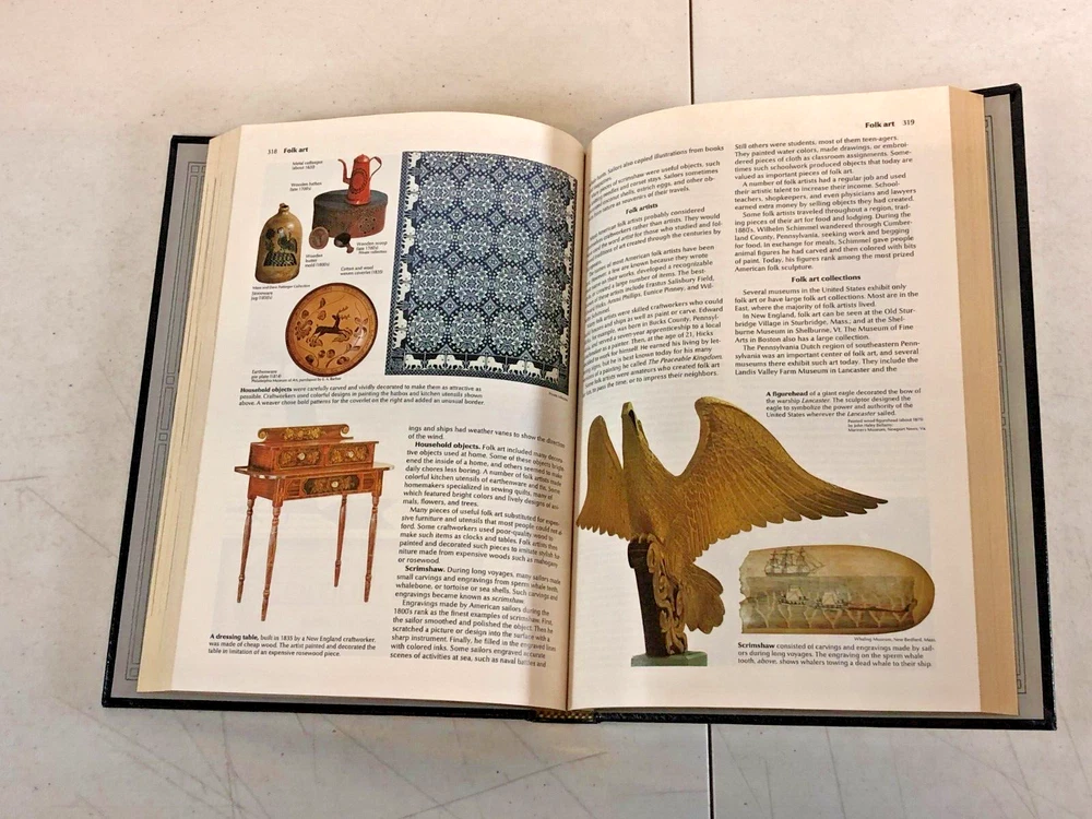 Please note we do not work weekends . All offers, questions, or concerns may not be answered until Monday. Please understand this means you may need to resubmit your offer Sunday evening. Thank you for supporting our libraries and have a great weekend. World Book was founded in Chicago by publishers J. H. Hansen and John Bellow, who realized that existing encyclopedias were off-putting to readers. In 1915, they enlisted the help of Michael Vincent O'Shea, a professor of education at the University of Wisconsin. The first edition of The World Book Encyclopedia was published (as simply The World Book) in 1917, by the Hanson-Roach-Fowler Company. "As a rule," wrote O'Shea, the founding editor, in the preface of that 1st edition, "encyclopedias are apt to be quite formal and technical. A faithful effort has been made in the World Book to avoid this common defect." The encyclopedia's name would later be shortened to its current name World Book. This is a beautiful complete set of World Book Encyclopedias, 22 volumes. Navy faux leather covers with gilt design on front and back covers, gilt lettering and design on spine, spine has 2 raised ribs. Gilt text block on all 3 sides. Volume 1 has a section for family history. They feel as if they have never been opened. Set weighs 65 lbs will ship in 2 boxes All proceeds benefit the Libraries of Pima County. Please review all photos. This listing has been donated. Please note that the listing is for what you see in the listing. We photograph all of it so you know what you are purchasing. The sale of the item(s) benefits Friends of the Pima Library (501c3 non-profit).