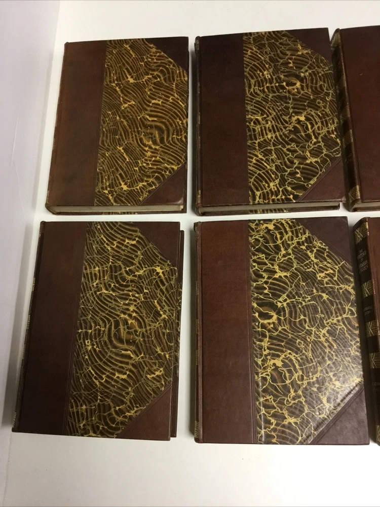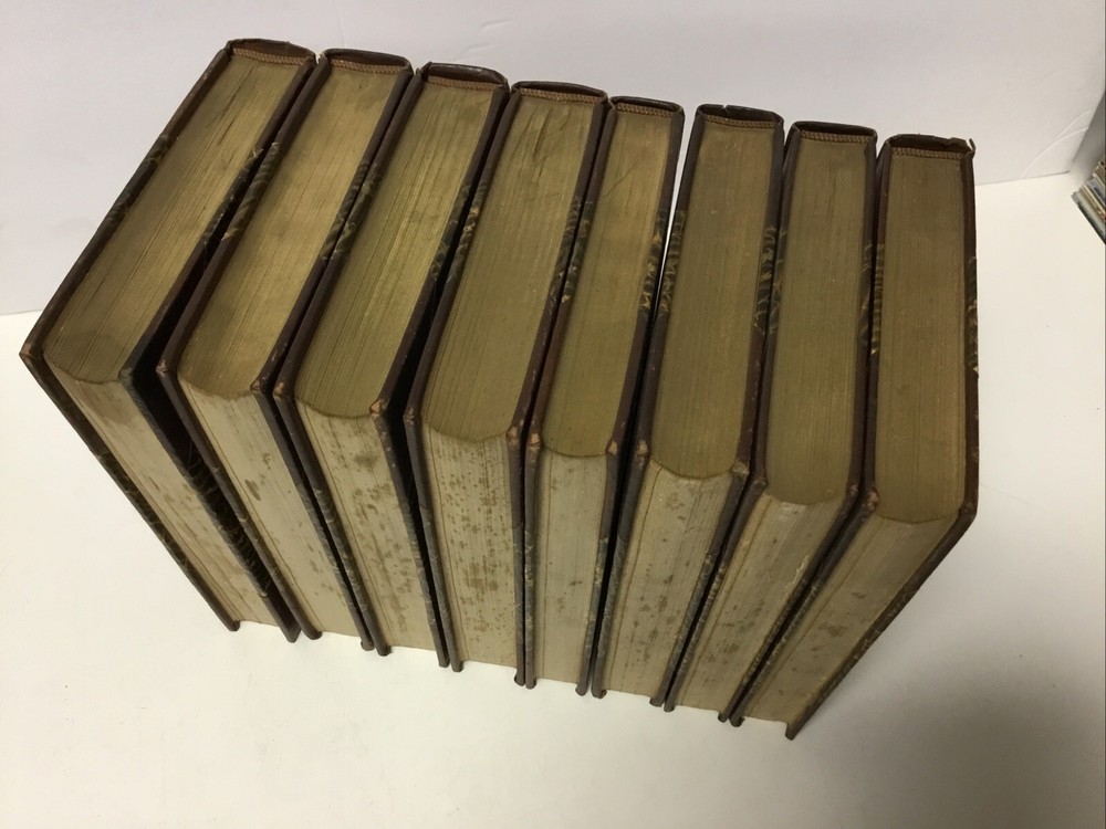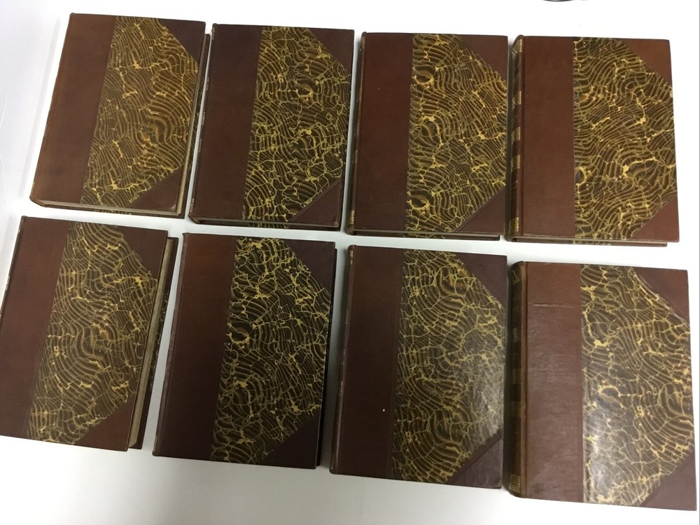See pictures. VG condition, showing some wear, half leather, beautiful antique book set. Introduction written by Theodore Roosevelt. There is a small split at top of spine cover for Vol 8. There is some foxing throughout the set but not at an interfering level. Some edge foxing, see pictures. This is a rare complete set.