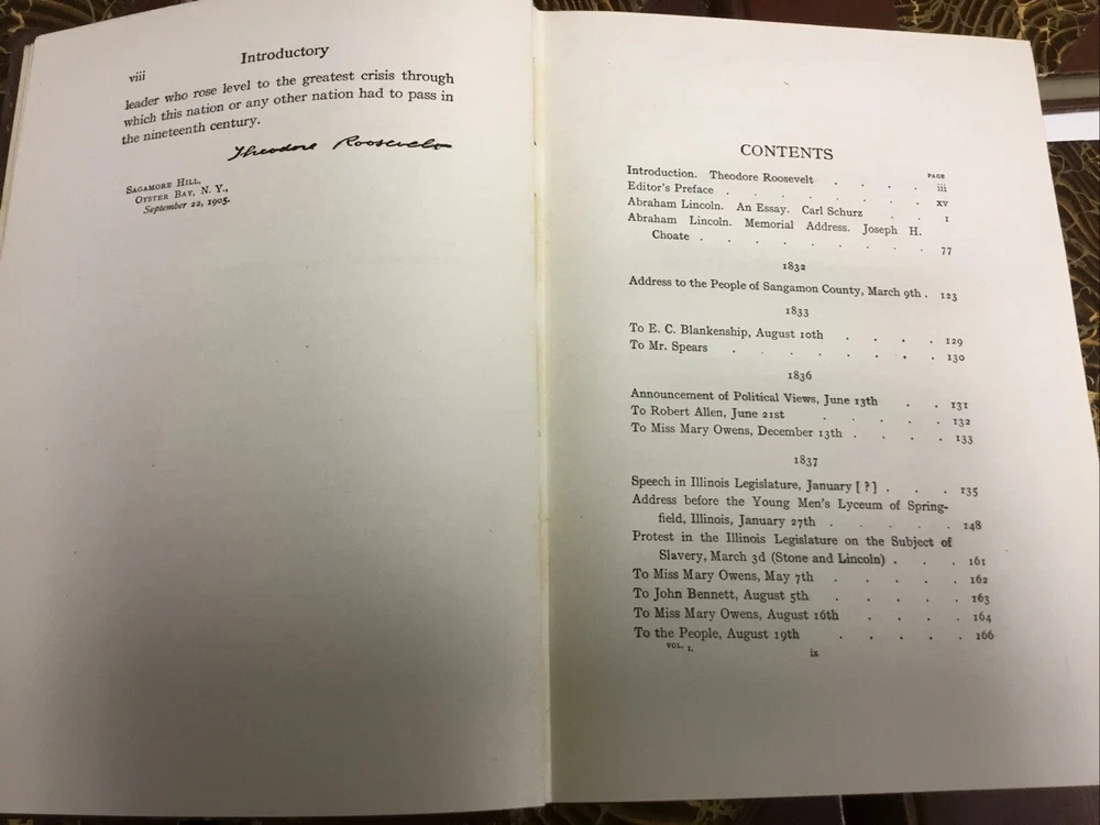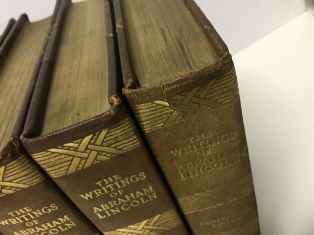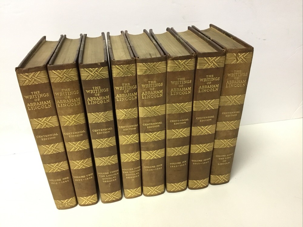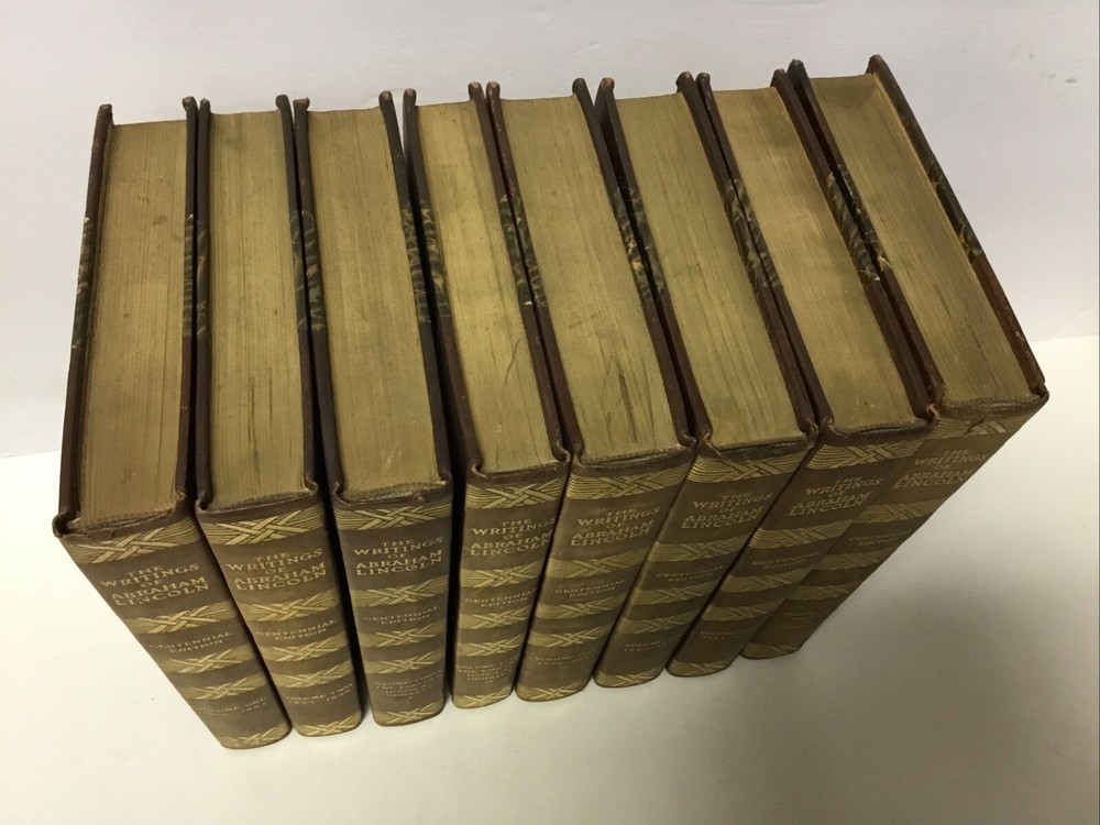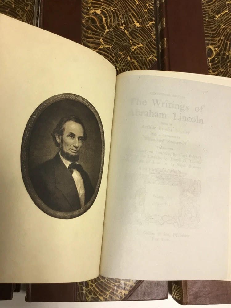 This stunning 1905 half-leather set of Lincoln's writings is a true collector's gem! The 8 volumes are in very good condition with just minor wear and light foxing, as shown in the photos. The rare complete set features Theodore Roosevelt's introduction, adding historical depth. Though Volume 8 has a small spine split, the antique charm remains intact—perfect for history lovers who appreciate character in vintage books. A magnificent piece of American heritage!