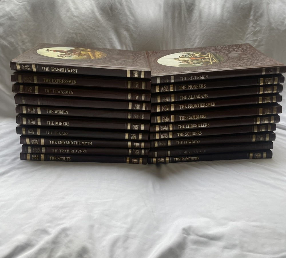 Near-complete set of “The Old West” book series by Time-Life Books, consisting of 20 out of the original 26 volumes. In great condition, this collection includes iconic titles like “The Spanish West,” “The Cowboys,” “The Pioneers,” and more. Each hardcover features rich illustrations and detailed historical accounts of the American West. Perfect for collectors, history enthusiasts, or as a decorative library addition. Missing 2 volumes (unspecified), with minor shelf wear. A timeless piece of Americana!
