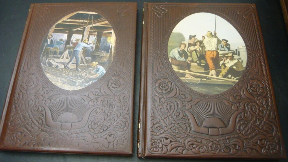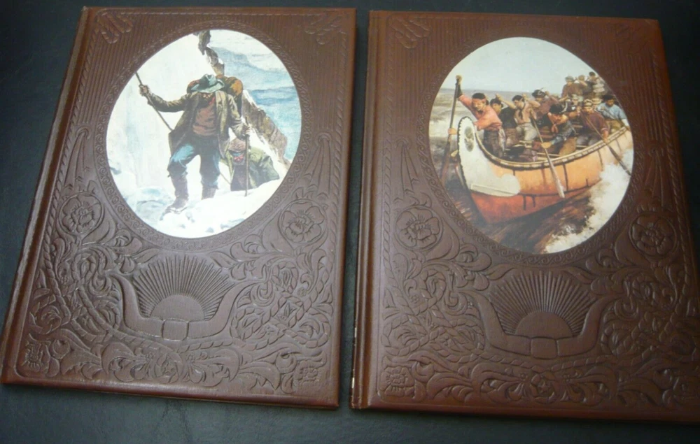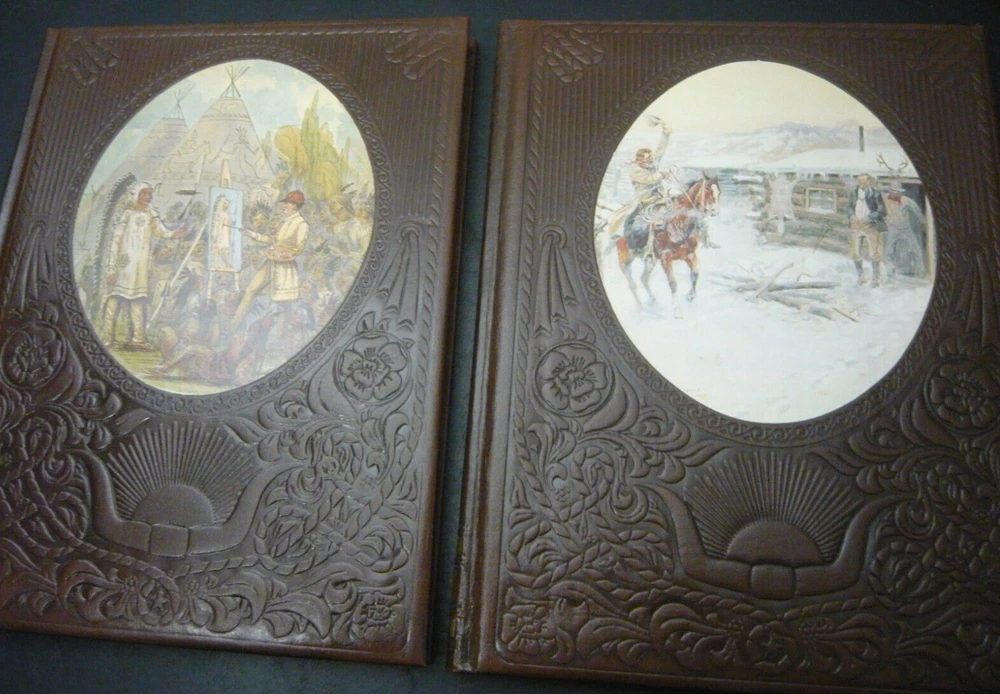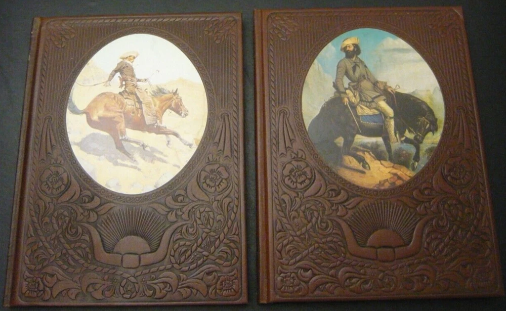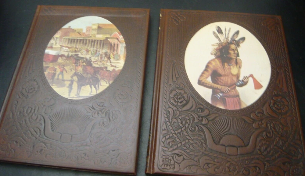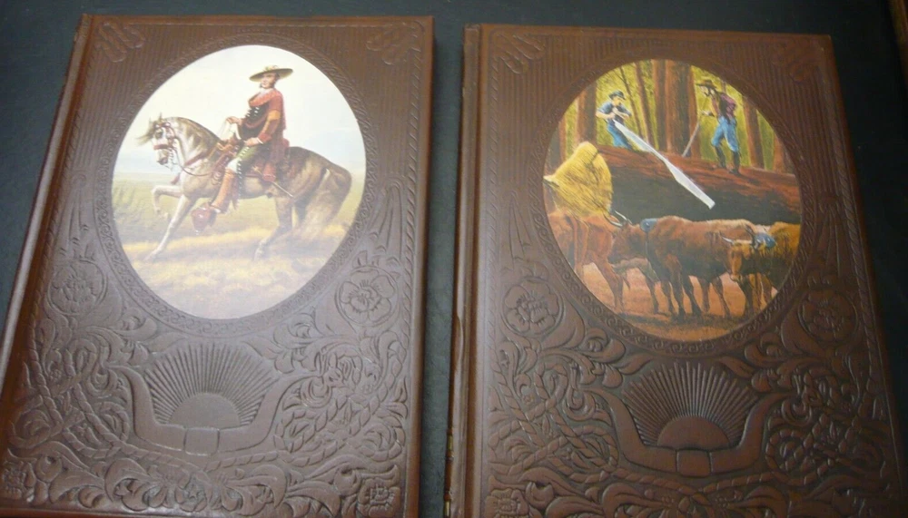 This is a set of 21 of 26 total volumes of Old West Time Life series. They have been stored in a SoCal bedroom since they were purchased. Not sure why the series is not complete, but this is all the volumes I could find. Some of "gold" embossing is wearing off or oxidizing. All pages are very crisp, and I doubt they were read. This set had been stored stacked upon one another for years and some of the flexible leather binding has impressions from the books stacked on top, as I have shown in several pictures.
