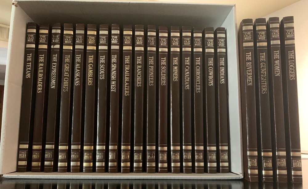 Time-Life Books, The Old West, Series 21 Volume Set. Faux Leather Bound.. Condition is "Like New". The cowboys, Indians, chroniclers, Canadians, miners, soldiers, pioneers, rancher’s, trailblazers, Spanish Wells, scouts, gamblers, Alaskans, grilled cheese, expressmen, Railroaders, Texans, lodgers, women, gun fighters & River-men. ***used condition****