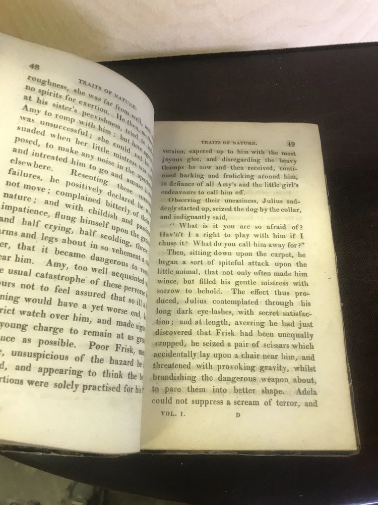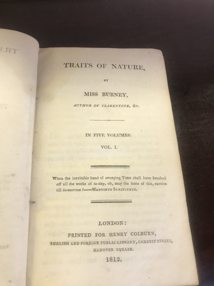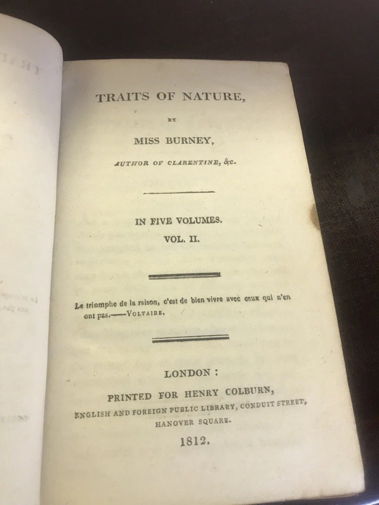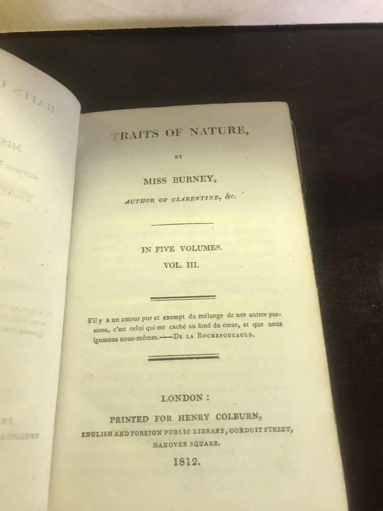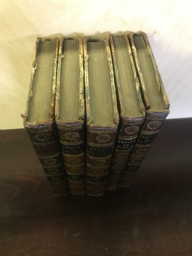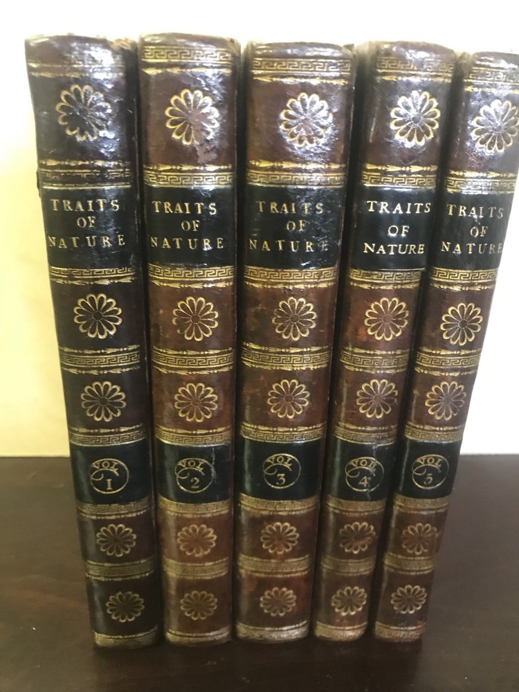 Traits of Nature 1812 Five Volume Set First Edition Leather Binding Printed for Henry Colburn Printed by Cox and Baylis 7” x 4.5” Foxing on end pages, pages yellowing Interior pages good condition All items come exactly as shown Keep in mind the shipping price also covers handling fees, packaging materials & time, not just postage. See our eBay store for our other items. B12