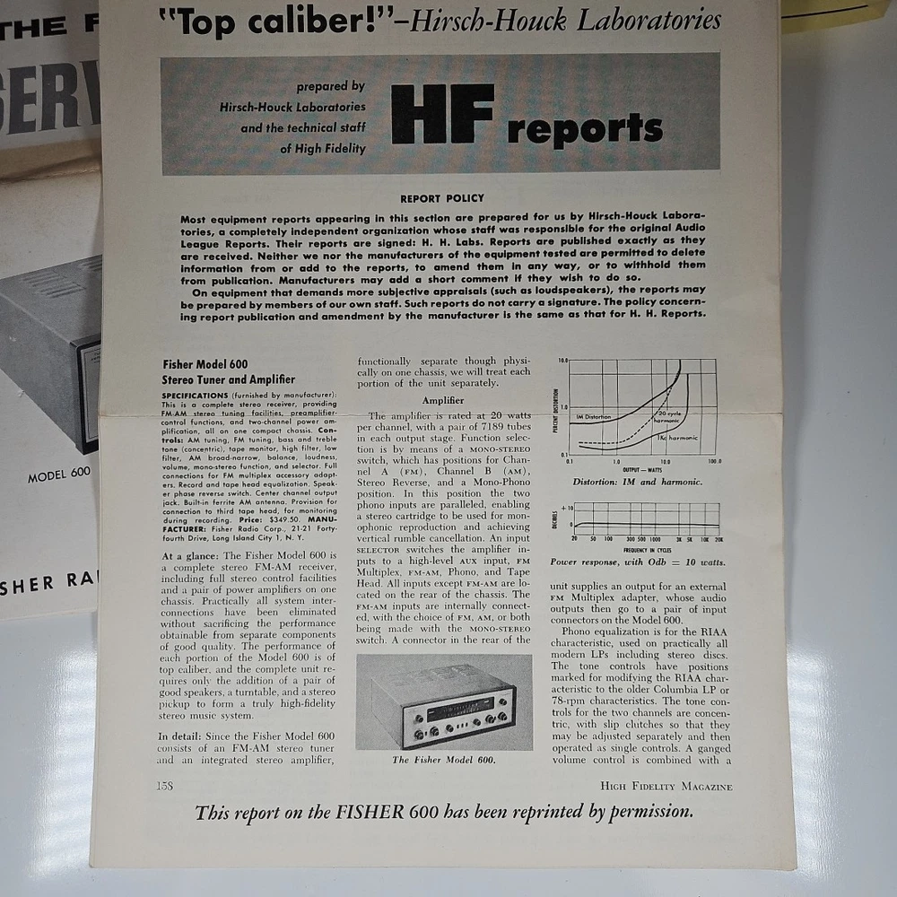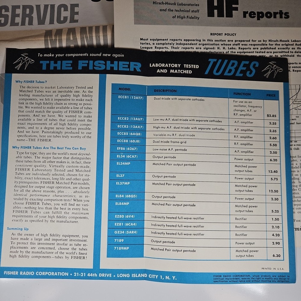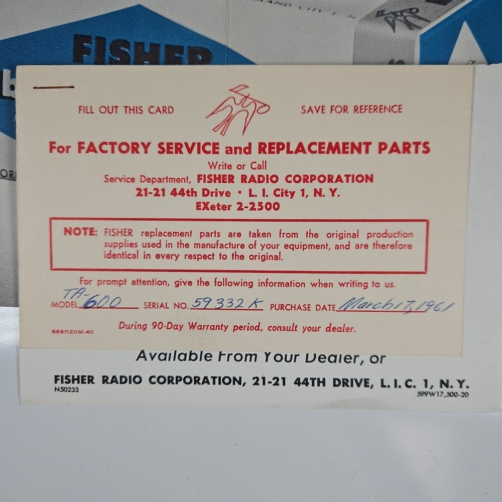 Tube & Service Manual Vintage FISHER "The 600" TA600 Tuner AM/FM Audio Receiver This is a lot of original Fisher manual and factory papers. Good condition with wear and a darkened sun stripe across the middle of the Service Manual. FREE SHIPPING