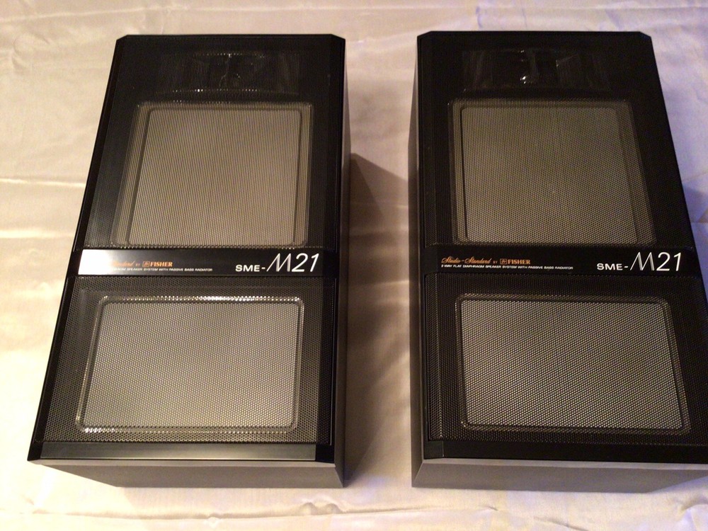 Two (2) Count Fisher SME - M21 Diaphragm Studio Standard Speaker System. 2 Way Flat Diaphragm Speaker System with Passive Bass Radiator. Each Speaker is 13 1/8” high 7 3/8” wide 6 1/4” deep. Was part of a Fisher model TAC - M21 double deck receiver system not included in this sale. Shipping is to the 48 contiguous United Statethank you for viewing this item