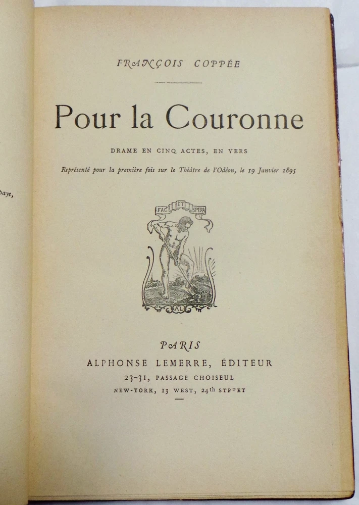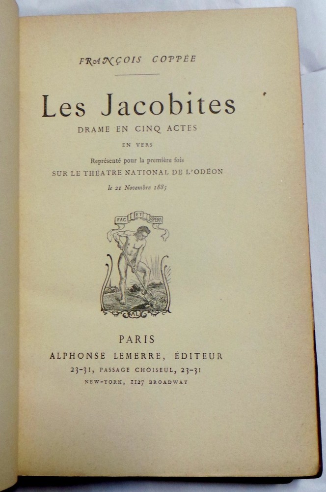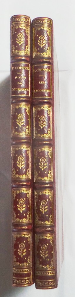 Title Les Jacobites; and Pour La Couronne. (Fine Signed Leather Binding, Very Good) Author Coppee, Francois (1842-1908) Condition Very Good Binding Three Quarter Morocco Leather Publisher Alphonse Lemerre, Editeur Publisher Place Paris Size 12mo - over 6¾" - 7¾" tall Description 2 Volumes. Not dated (ca. 1895). Text in French. Contemporary three quarter red crushed levant morocco leather bound and signed by Brentano's Paris. As you would expect from Brentano's. Raised bands, compartmented with tooled designs on spine. Top edge gilt marbled boards and endpages. François Edouard Joachim Coppée (January 26, 1842 – May 23, 1908), was a French poet and novelist. Powered by eBay Turbo Lister The free listing tool. List your items fast and easy and manage your active items.