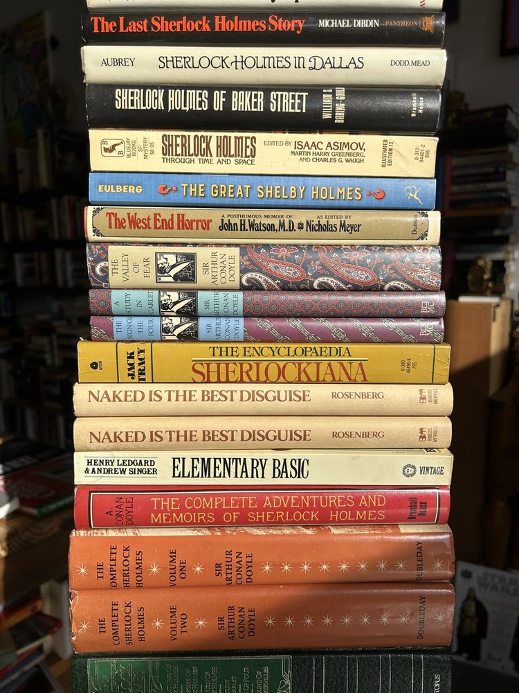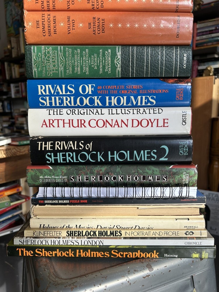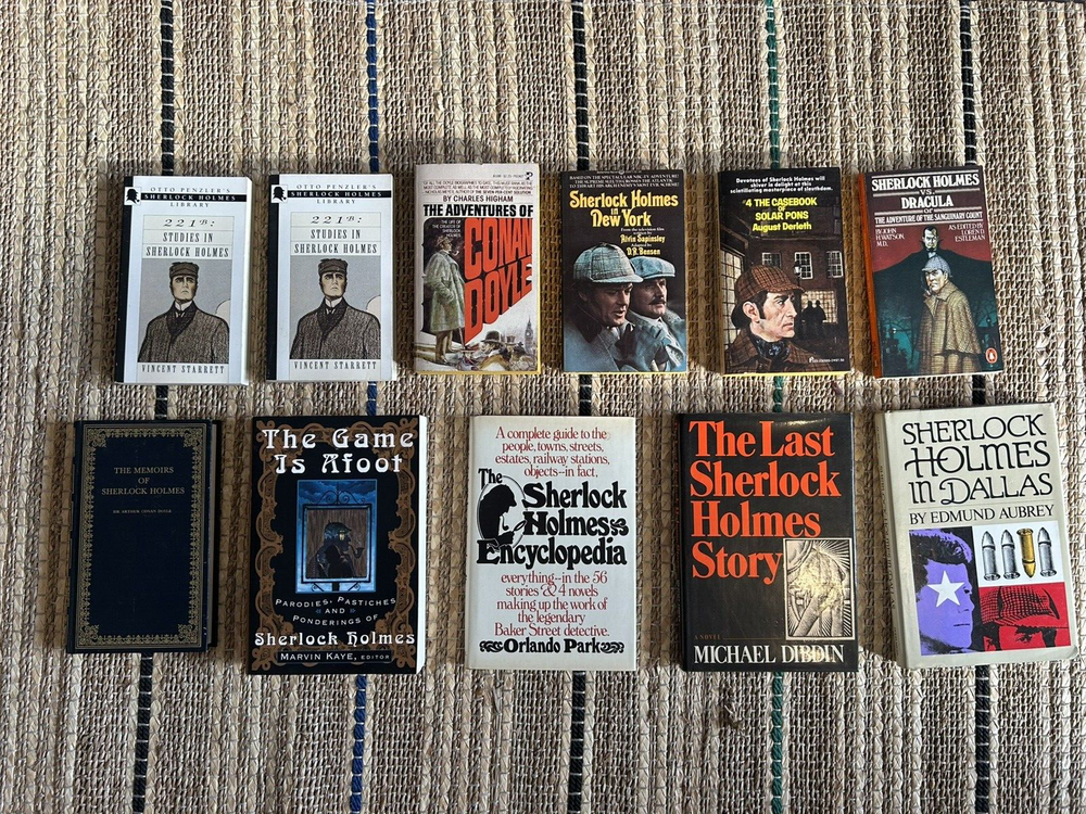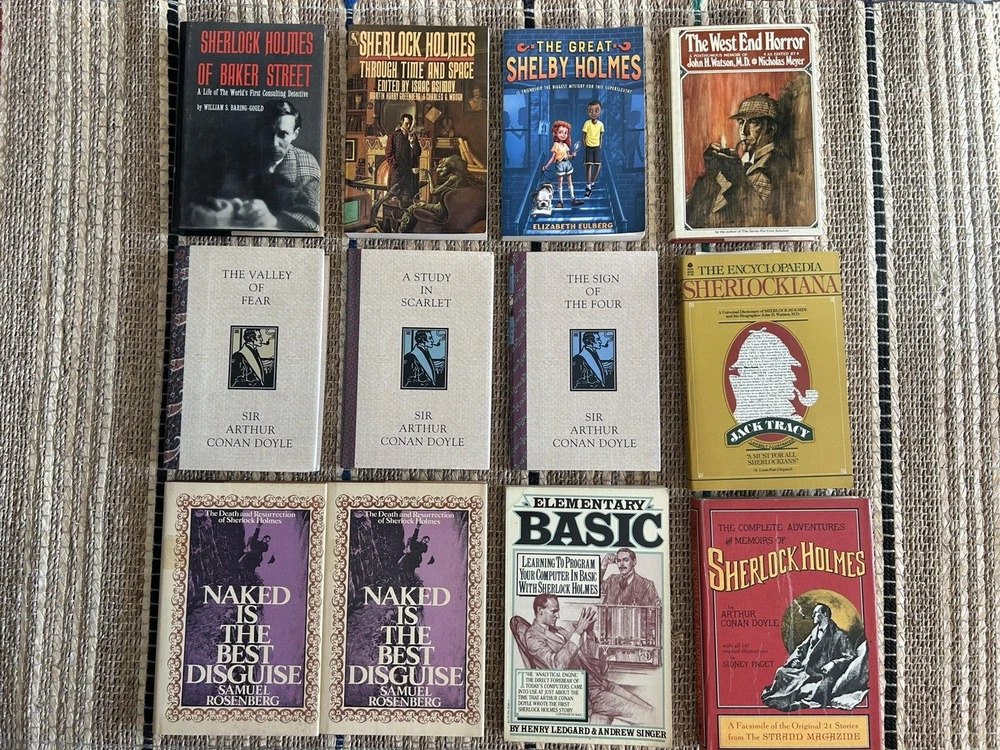 Congrats, you've hit the motherlode! The biggest collection of Sherlock Holmes and Sir Arthur Conan Doyle books ever! A huge set of paperback, hardcovers, and leather bounds... We have Sherlock Encyclopedias, collections, retellings/reimaginings, photobooks, SACD biographies, and many more! Since we have 37 books here, we've got a variety of conditions so please see the pictures for more accurate descriptions! But most range from like new to very good. This collection is unlike any you have seen before! Check out the detailed list of novels below and thanks for checking this listing out! (in order of photo, top to bottom) 1. 221B: Studies in Sherlock Holmes (Vincent Starrett) 2. 221B: Studies in Sherlock Holmes (Vincent Starrett) 3. The Adventures of Conan Doyle (Charles Higham) 4. Sherlock Holmes in New York (Alvin Sapinsley, D.R. Benson) - 1st edition 1976 5. #4 The Casebook of Solar Pons (August Derleth) - First Printing, April 1975 6. Sherlock Holmes v.s. Dracula (John H. Watson, M.D.) 7. The Memoirs of Sherlock Holmes (Sir Arthur Conan Doyle) 8. The Game is Afoot: Parodies, Pastiches and Ponderings of Sherlock Holmes - 1st Paperback Edition, 1995 9. The Sherlock Holmes Encyclopedia (Orlando Park) 10. The Last Sherlock Holmes Story (Michael Dibdin) - 1st American Edition 11. Sherlock Holmes in Dallas (Edmund Aubrey) 12. Sherlock Holmes of Baker Street: A Life of the World's First Consulting Detective (William S. Baring-Gould) 13. Sherlock Holmes: Through Time and Space (Martin Harry Greenberg, Charles G. Waugh) - 1st Paperback Edition 14. The Great Sherlock Holmes (Elizabeth Eulberg) 15. The West End Horror (John H. Watson) - 1st Edition 16. The Valley of Fear (Sir Arthur Doyle) - 1994 Book-of-the-Month Club Special Edition 17. A Study in Scarlet (Sir Arthur Doyle) - 1994 Book-of-the-Month Club Special Edition 18. The Sign of the Four (Sir Arthur Doyle) - 1994 Book-of-the-Month Club Special Edition 19. The Encyclopaedia Sherlockiana (Jack Tracy) - 1st Avon Printing, 1979 20. Naked is the Best Disguise (Samuel Rosenberg) - Third Printing 21. Naked is the Best Disguise (Samuel Rosenberg) - Third Printing 22. Elementary Basic: Learning to Program Your Computer in Basic with Sherlock Holmes (Henry Ledgard, Andrew Singer) - 1st Edition 23. The Complete Adventures and Memoirs of Sherlock Holmes (Arthur Conan Doyle) 24. The Complete Sherlock Holmes (Sir Arthur Conan Doyle) 25. The Complete Sherlock Holmes (Sir Arthur Conan Doyle) 26. Treasury of World Masterpieces: The Celebrated Cases of Sherlock Holmes (Sir Arthur Conan Doyle) 27. Rivals of Sherlock Holmes 28. The Original Illustrated (Sir Arthur Conan Doyle) 29. Rivals of Sherlock Holmes 2 30. Celebrated Classics of Sherlock Holmes (Sir Arthur Conan Doyle) 31. Sherlock Holmes Puzzles 32. The Sherlock Holmes Puzzle Book 33. The Doyle Diary: The Last Great Conan Doyle Mystery 34. Holmes of the Movies (David Stuart Davies) 35. Sherlock Holmes: In Portrait and Profile (Walter Klinefelter) 36. Sherlock Holmes's London 37. The Sherlock Holmes Scrapbook This is the definitive and nearly complete in many respects. Please see the photos for more details and feel free to ask any questions. All books ship within 2 boxes via USPS with tracking within 24 hours.