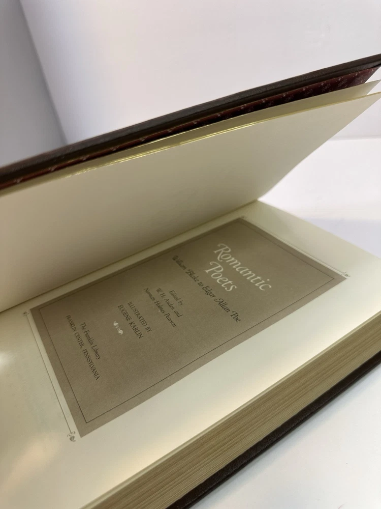 Three books: Romantic Poets William Blake to Edgar Allan Poe; The Decameron Giovanni Boccaccio; Aristotle Rhetoric and On Poetics. Some gold parts is faded, names for two are faded as well...