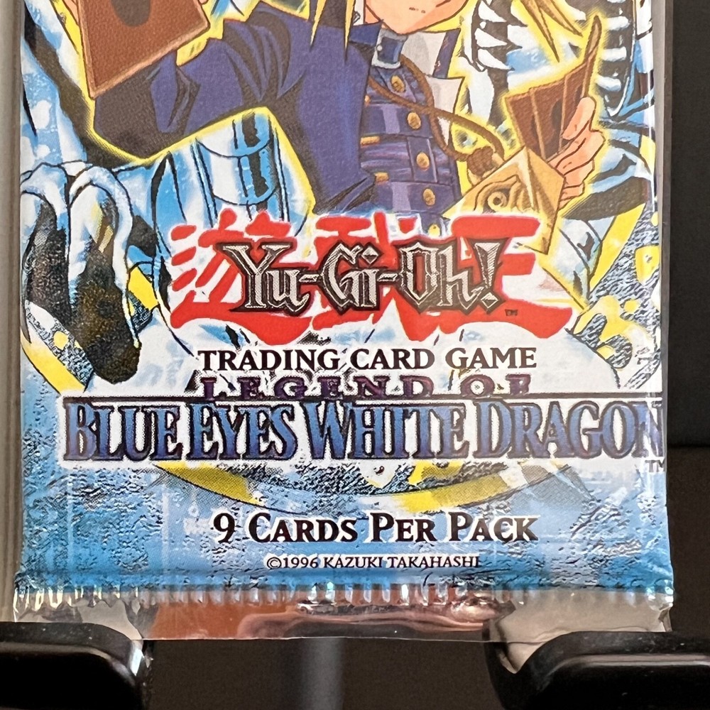 Up for grabs is a rare, unopened 1996 Yu-Gi-Oh Trading Card Game "Legend of Blue Eyes White Dragon" pack, a true treasure for collectors and fans of the iconic card game! This vintage pack, produced by Konami, contains 9 cards and is still sealed in its original packaging, making it a prized addition to any Yu-Gi-Oh collection. As one of the first sets ever released for the Yu-Gi-Oh TCG in North America, this pack could contain some of the game’s most legendary cards, including the coveted "Blue-Eyes White Dragon" itself! Details: Set: Legend of Blue Eyes White Dragon (1996) Edition: Unlimited Edition (no "1st Edition" stamp present) Contents: 9 cards per pack (8 Common cards + 1 Rare, as per the pack description) Condition: Unopened and factory sealed, in excellent condition with no tears, creases, or damage to the packaging. This pack has been carefully stored for over 20 years, tucked away after being purchased for a birthday party my son never attended. Please see photos for details. Manufacturer: Konami, with designs by Kazuki Takahashi Rarity Odds: Stated odds reflect the average of the entire production run (1 Rare per pack, with a chance for Super Rare, Ultra Rare, or Secret Rare cards as per the pack’s fine print). Additional Info: ISBN 1-931860-46-7, UPC 53334 26439. Manufactured by Konami Corporation, distributed by Upper Deck Company, LLC. A Personal Story: I bought this pack over 20 years ago for a birthday party my son was supposed to attend, but he never made it to the event. It’s been tucked away ever since and recently discovered. I hope this pack finds a new home with someone who will cherish it! This pack is a true piece of Yu-Gi-Oh history, hailing from the game’s earliest days in 1996. It’s a dream find for collectors and players alike, offering the chance to pull iconic cards like "Blue-Eyes White Dragon," "Dark Magician," or "Exodia the Forbidden One" pieces. Whether you’re looking to open it for a nostalgic experience or preserve it as a sealed collectible, this pack is a rare opportunity to own a piece of TCG history! Shipping: Ships fast and securely within 1-2 business days with protective packaging to ensure safe delivery. Returns: Due to the rarity, I cannot accept returns on this pack.